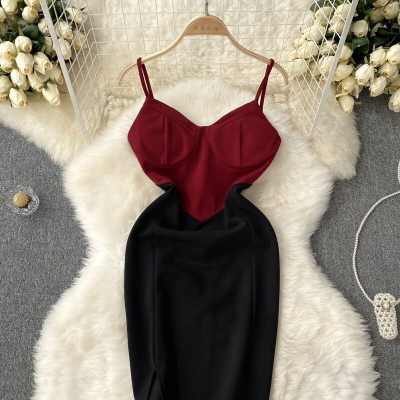 気質女神ファンスリムウエストスリムコントラストカラーサスペンダードレス夏の女性のエンドスリムフィットヒップショートスカート サマー 夏物 lyxaj27893515706