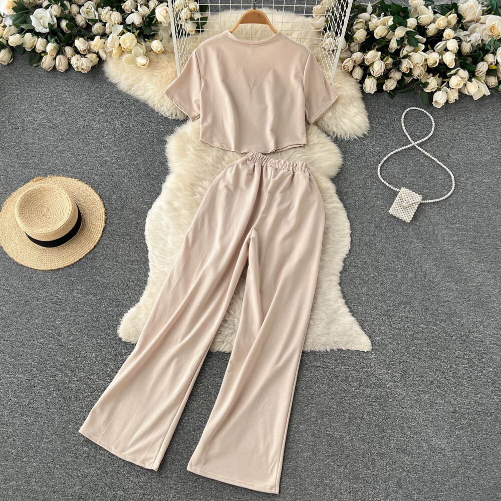 ネットセレブ スポーツスーツ レディース サマースタイル 2022年秋冬 ショート トップス 着回し カジュアル ワイドパンツ トレンド ツーピース セット 夏物 lyxaj63925669281