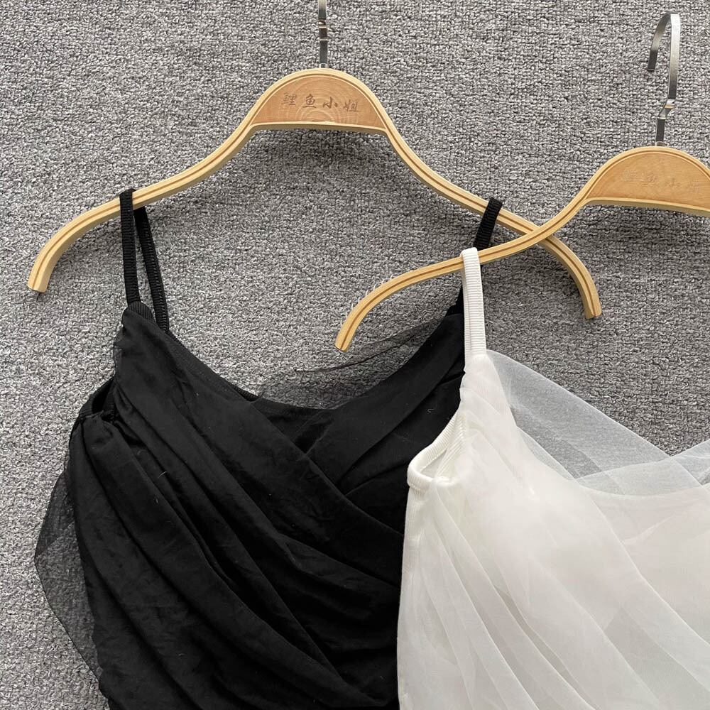センスニッチ フレンチセクシー チェストパッド付き クロス ダブルメッシュ ショート キャミソール トップス lyxaj16775560767