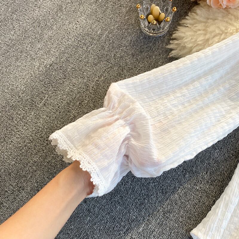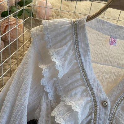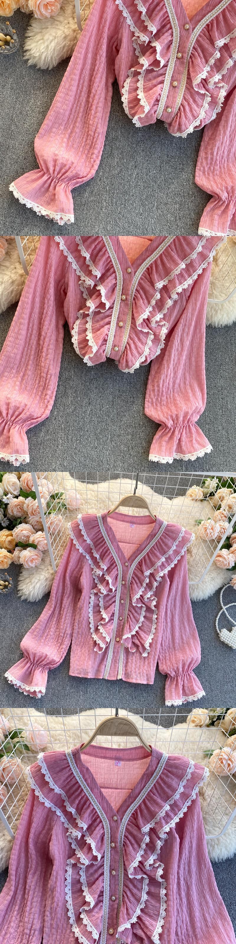 フランスのニッチなデザイン フリル トランペット スリーブ シャツ ジャケット秋の女性の eign スタイル V ネック シックで美しい小さなシャツ オータム 秋物 Vネック lyxaj4996609548