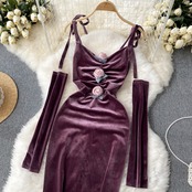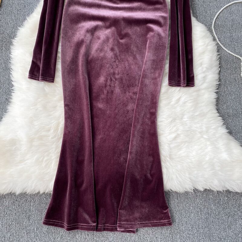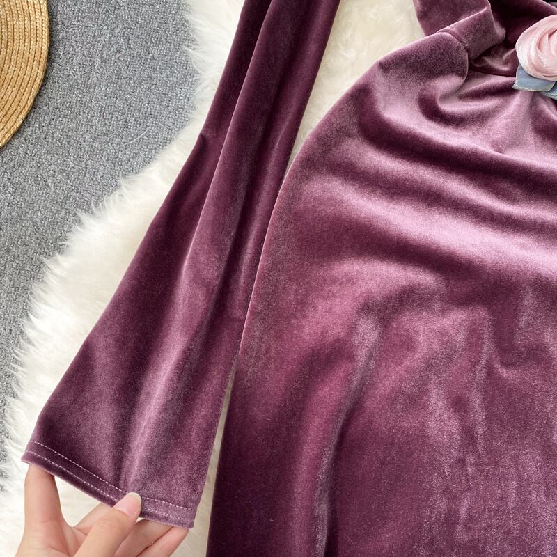 秋と冬のセクシーなゴールド ベルベット立体ローズ ハンギング ネック パーティー イブニング ドレス ドレス バッグ ヒップ マーメイド ドレス オータム 秋物 ウィンター 冬物 lyxaj78458147820