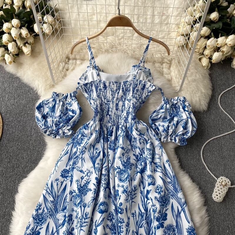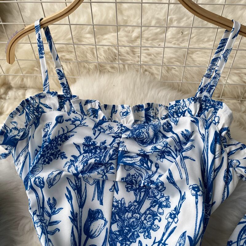 フレンチフローラルワンショルダードレスレディースサマーハイエンドオフショルダースカートレディースウエスト丈スカートチューブトップサスペンダースカート 夏物 花柄 lyxaj14720731103