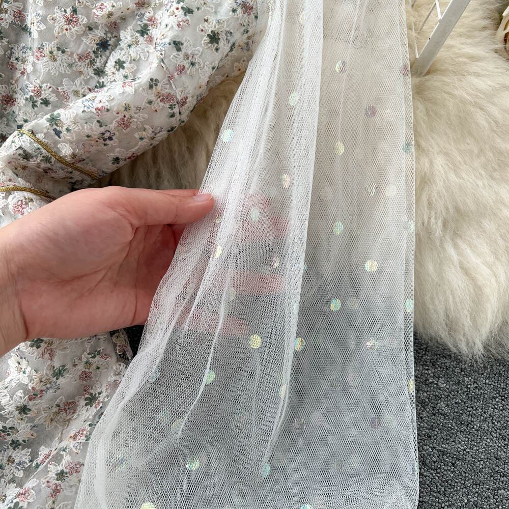 2022 春と夏の新重工業刺繍レースステッチメッシュエレガントな人形の襟長袖スリム A ラインスカート ロング スプリング 春物 サマー 夏物 Aライン lyxaj37773148129