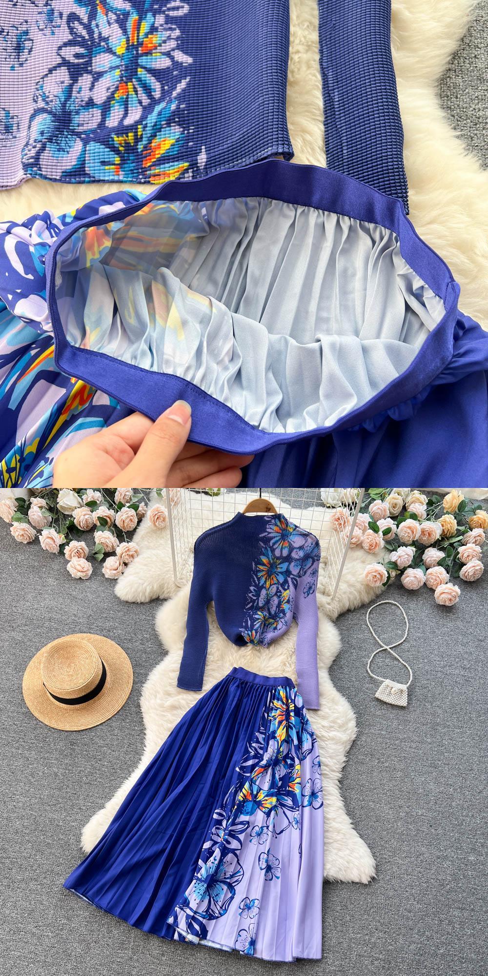 フレンチスタイルの小さな香りのスーツのスカートの女性 2022 秋の新しいプリントセーター + プリーツスカートツーピーストレンディ オータム 秋物 lyxaj95663809697