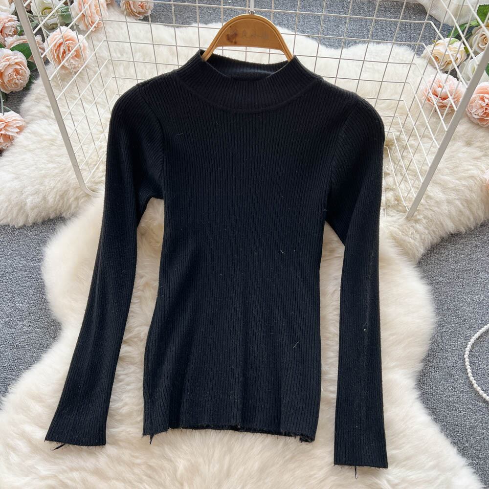秋と冬の有名人のスーツの女性の黒のニットのセーター + ストレート ハイウエスト カジュアルなウールのオーバーオール ワイドレッグ パンツ 2 点セット ハイウェスト ブラック オータム 秋物 ウィンター 冬物 lyxaj26512416359