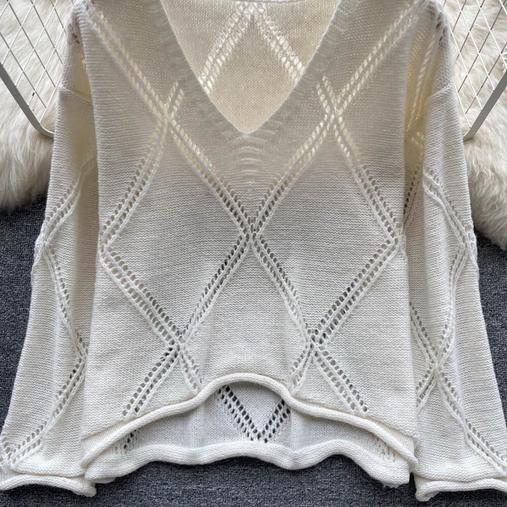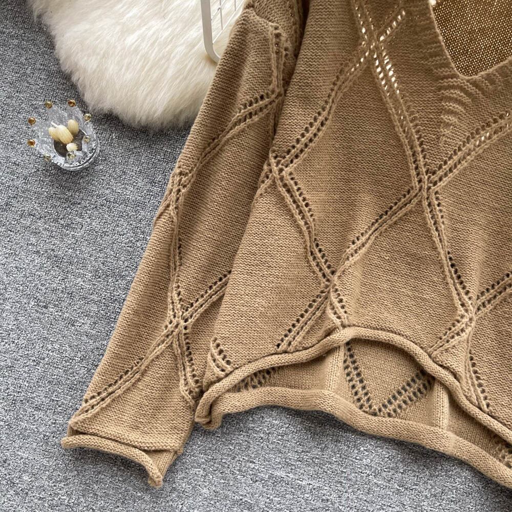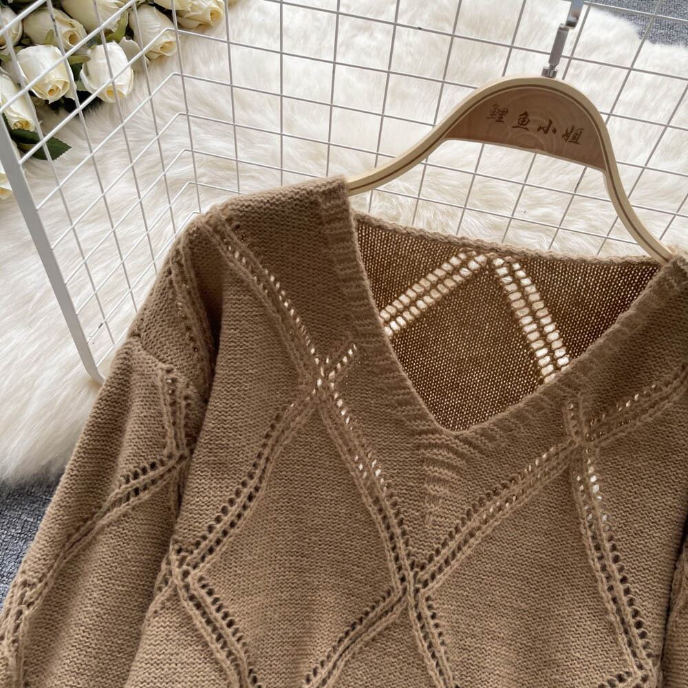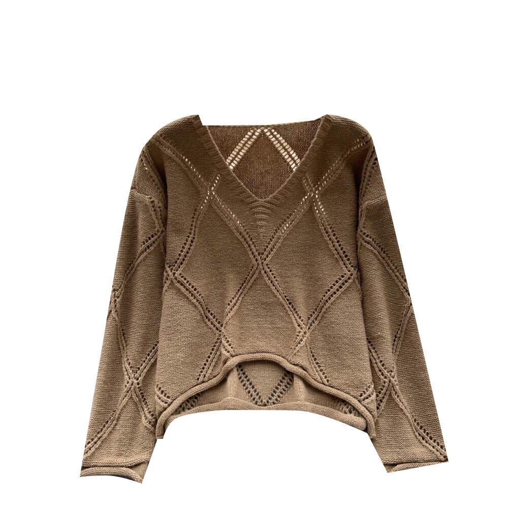 秋と冬の新しいデザイン感覚の怠惰なスタイル プルオーバー V ネック セーター中空個性不規則なセクシーなニット女性の潮 オータム 秋物 ウィンター 冬物 Vネック lyxaj83903072632