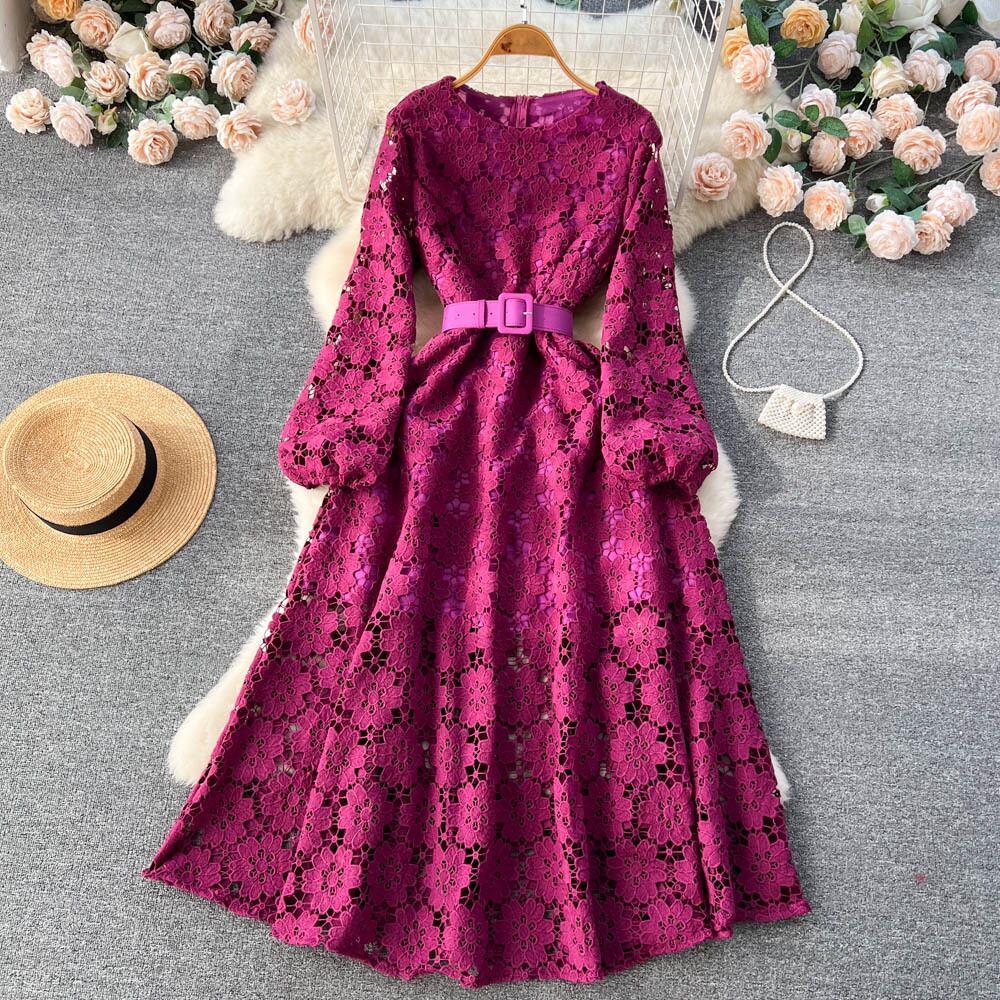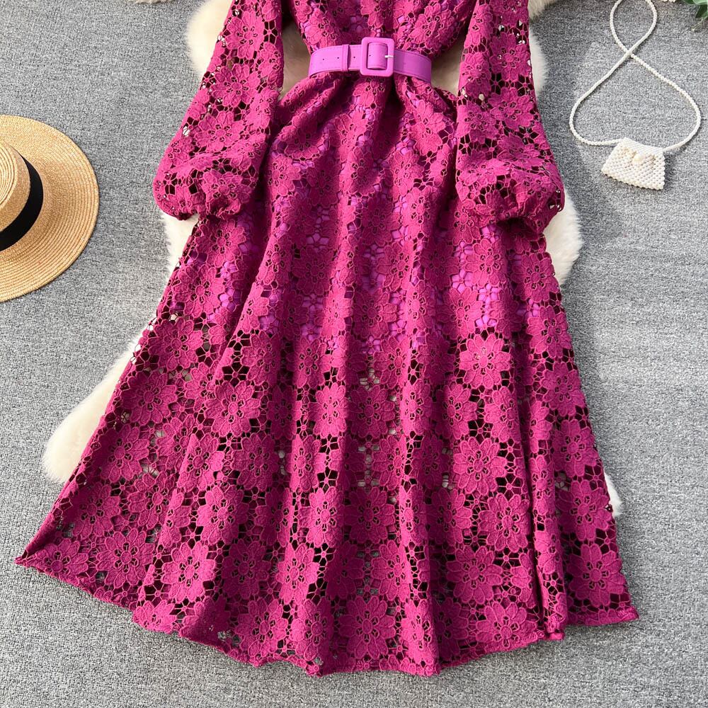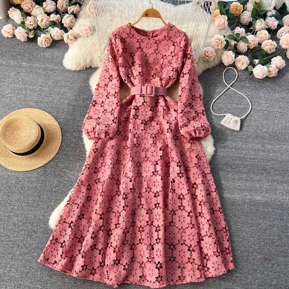 文学小さな新鮮なドレスの女性の春の新しいニッチ中空甘いかぎ針編みの花初恋スカート優しいフレンチドレス 大人ガーリー スウィート キュート カジュアル スプリング 春物 フラワーデザイン lyxaj7991189102