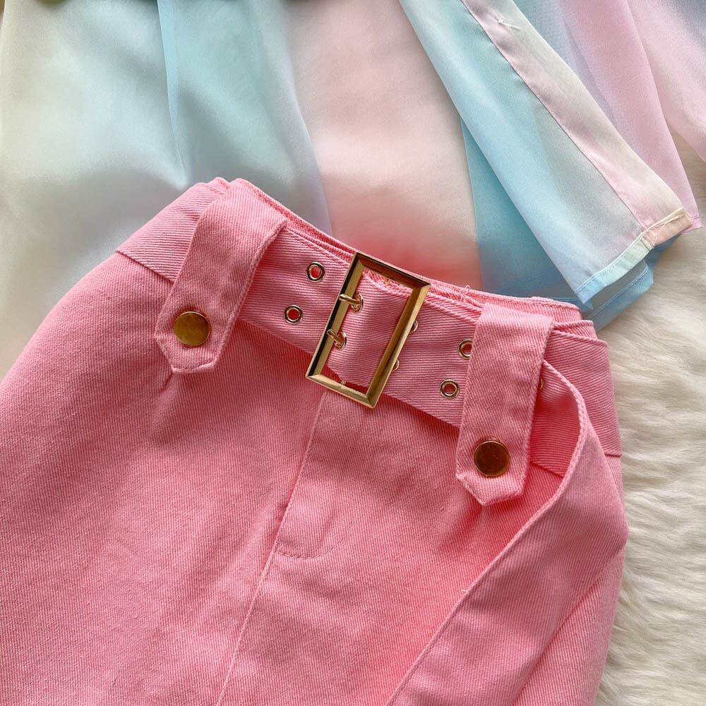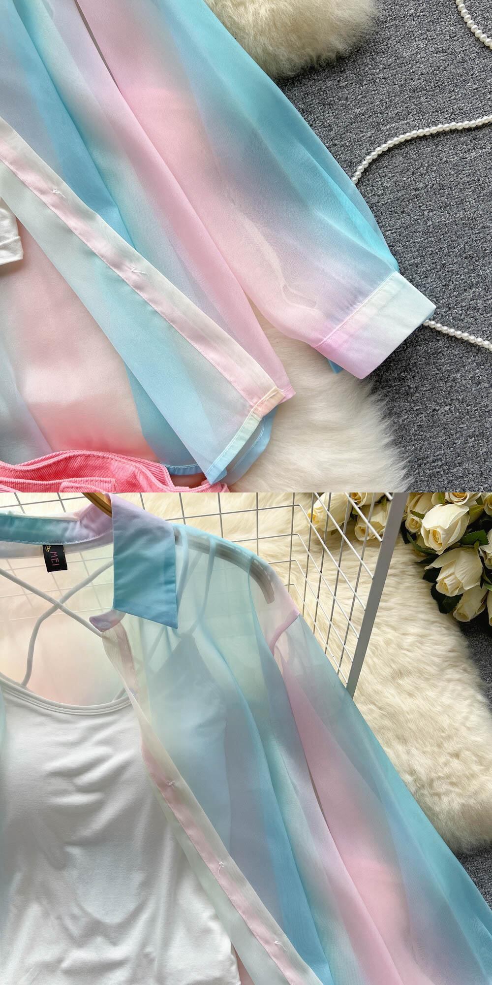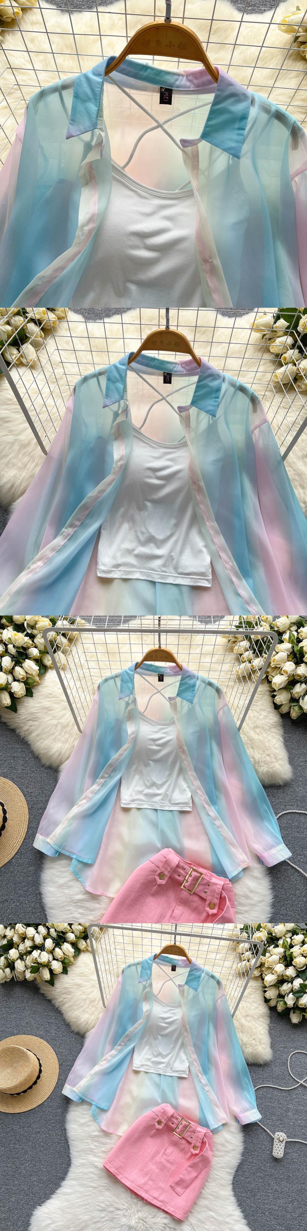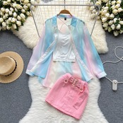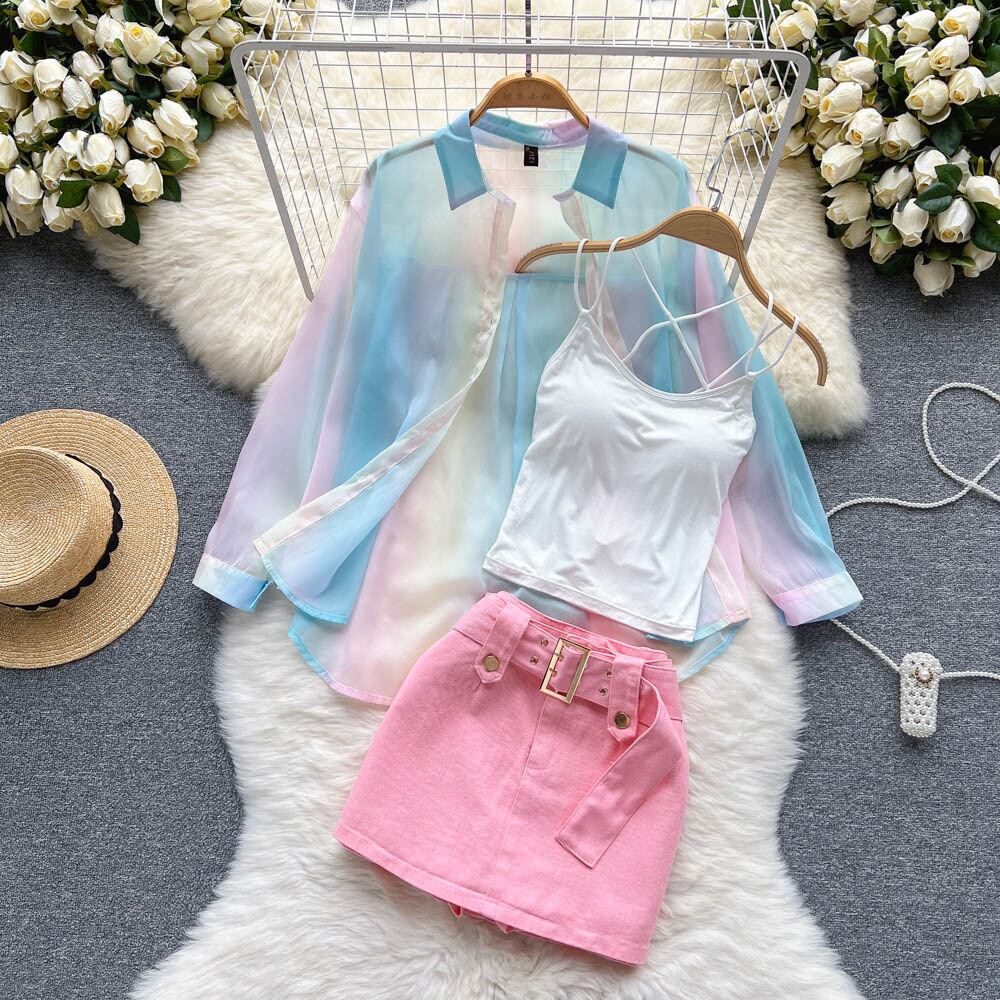 レインボーアイスシルク日焼け止めルースシャツ女性+ピュアデザサスペンダートップ+デザインセンスデニムスカートスリーピーススーツトレンディ lyxaj60446201349