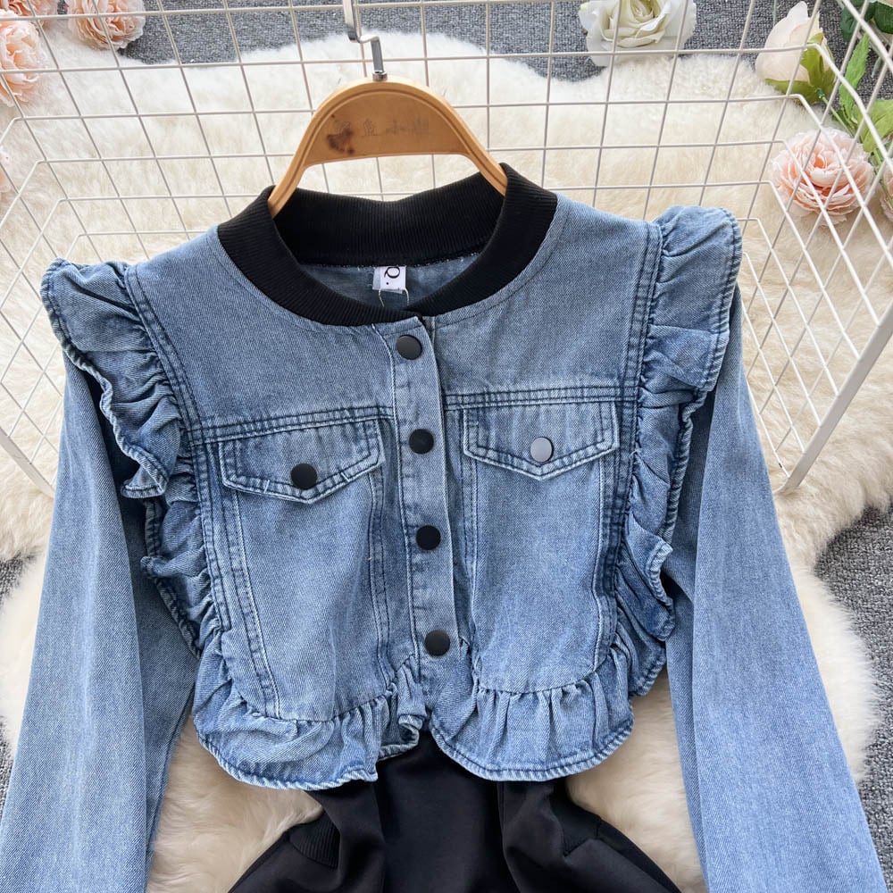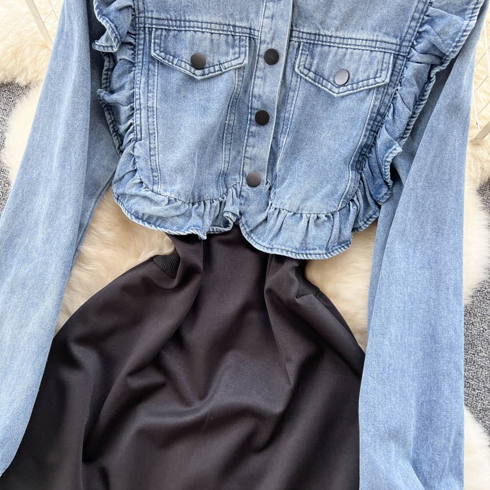 2022 秋と冬のレトロなデニムスプライシング気質ハイウエストドレススリムデニム木製耳ウエストウエストドレス オータム 秋物 ウィンター 冬物 lyxaj26493310829