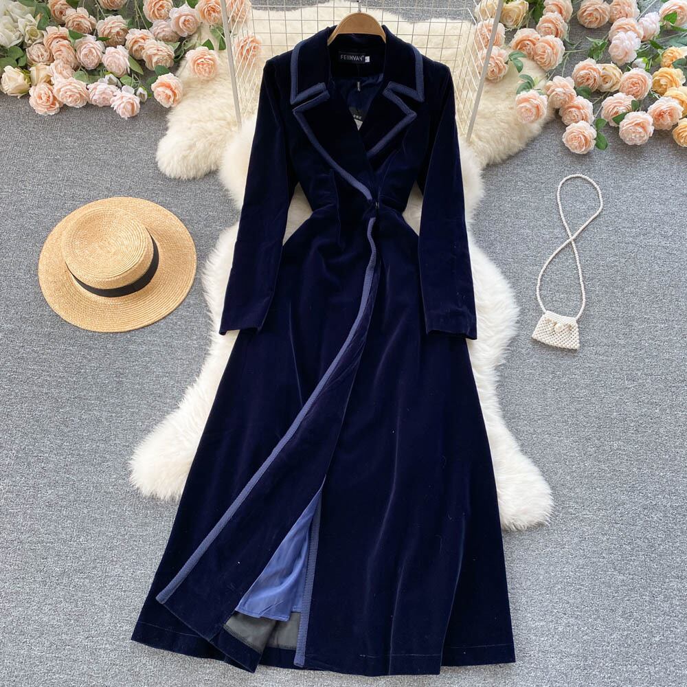 2022 秋冬新作ラペルロングウインドブレーカー女性の膝上気質コート雰囲気ベルベットゆったりスリムコートトレンディ オータム 秋物 ウィンター 冬物 lyxaj79523983787