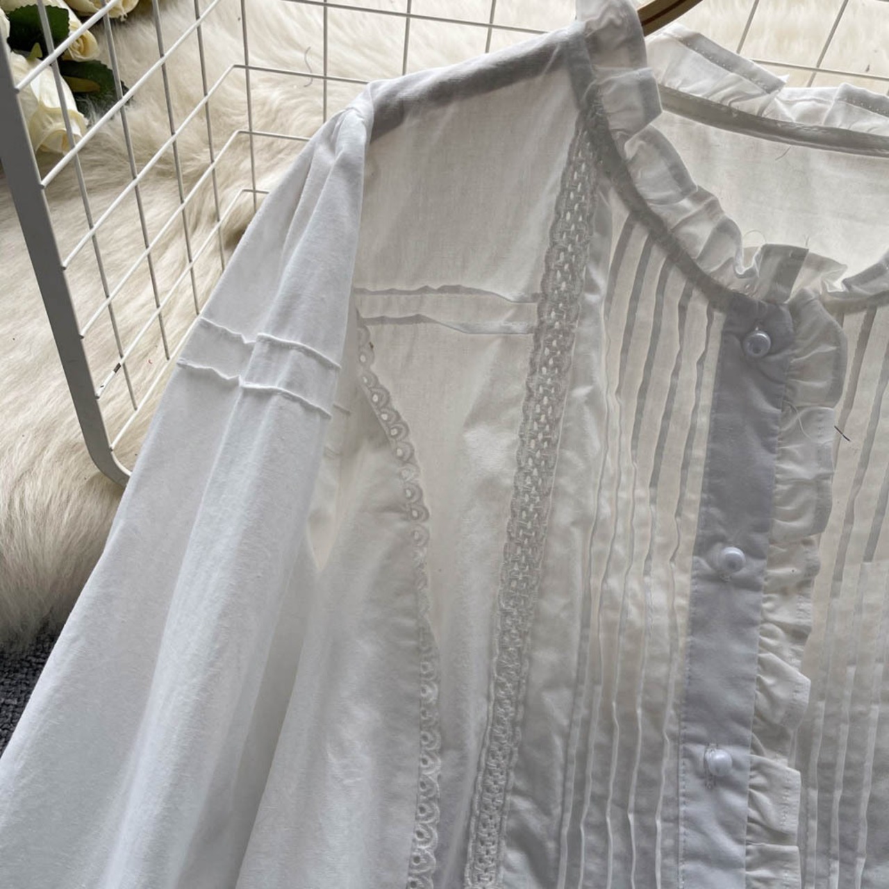フランスの白木の耳のシャツの女性の秋の長袖の甘い eign スタイルのシャツシングルブレストの小さな新鮮な妖精のトップ ロング ホワイト 大人ガーリー スウィート キュート カジュアル オータム 秋物 lyxaj47575024029
