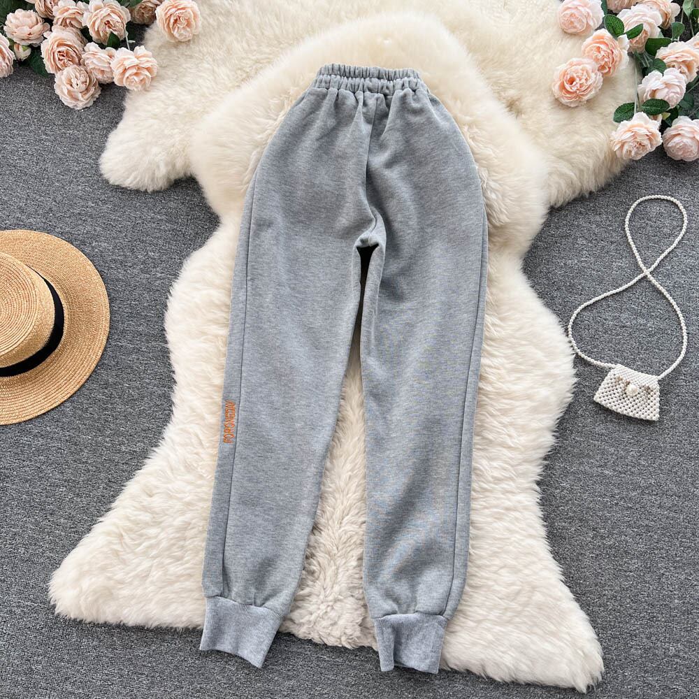 小柄な方はお腹をカバーして細く見える巾着ゴムハイウエストカジュアルパンツ女性の秋の新スポーツパンツ足付き ハイウェスト エラスティック 伸縮 オータム 秋物 lyxaj36798835944