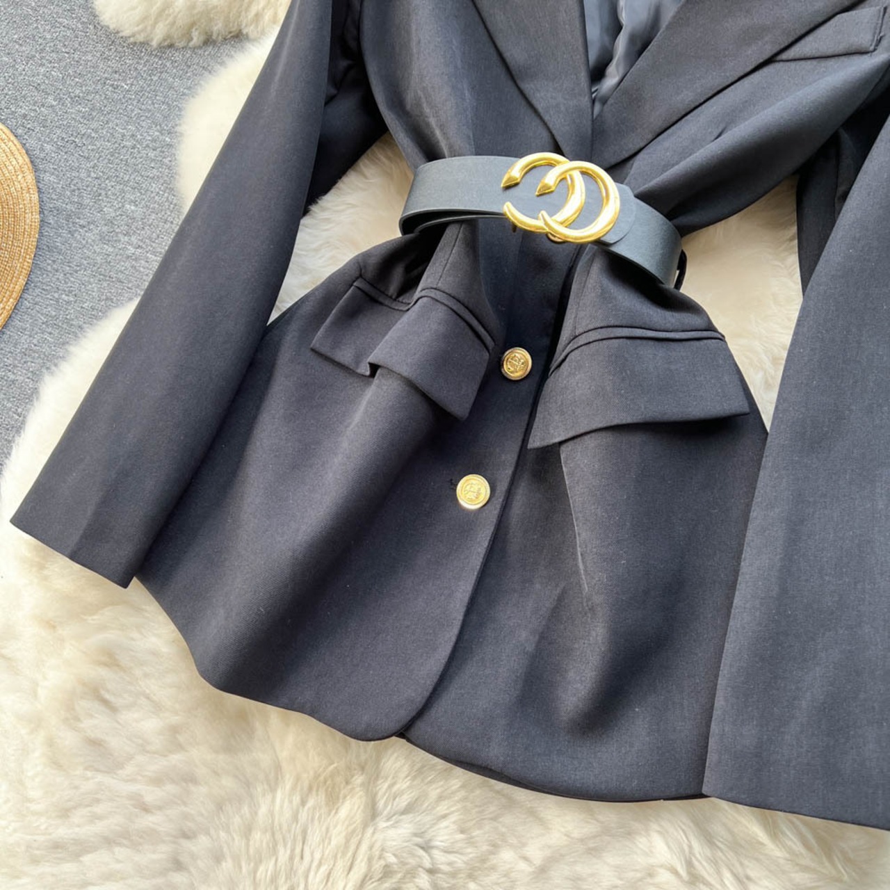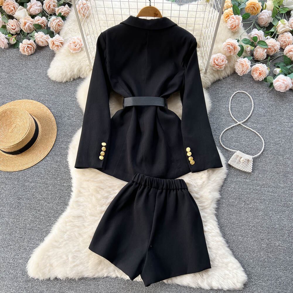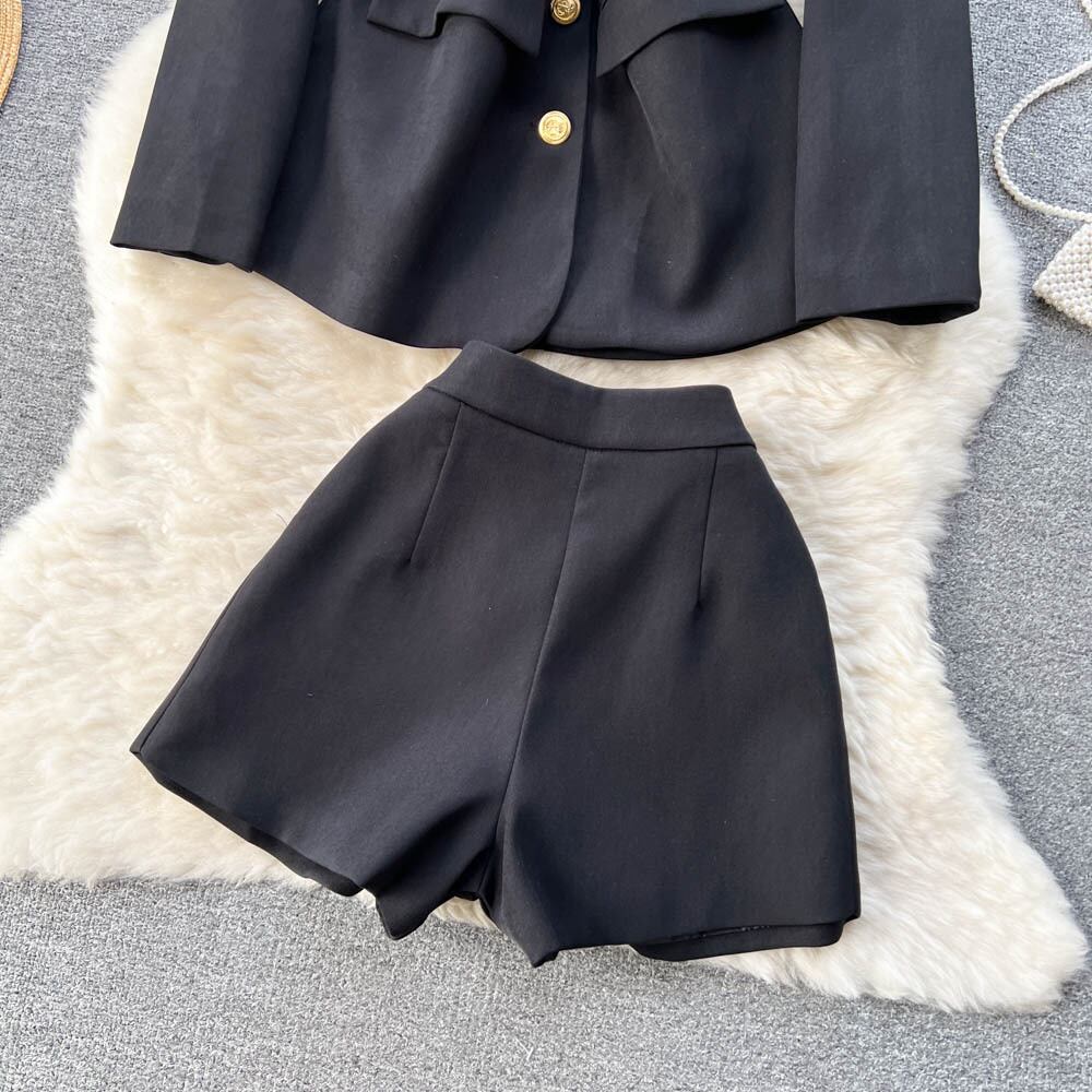 末気質のセレブスーツ スーツ レディース ミドル丈 ラペル 長袖スーツ ハイウエスト ワイドレッグ ショートパンツ ツーピーススーツ ハイウェスト ロング ショーツ ブルマー lyxaj28289777003