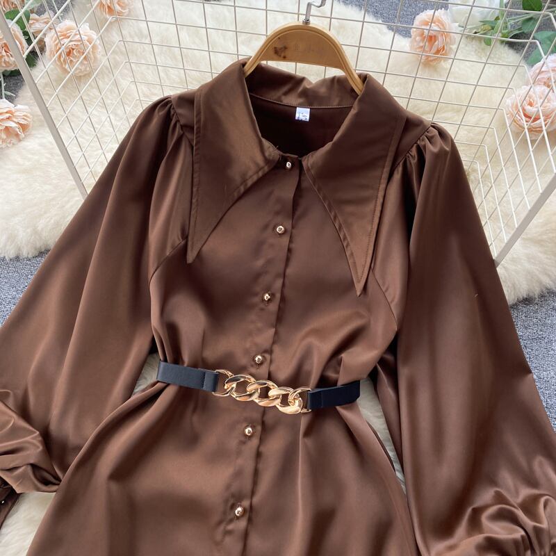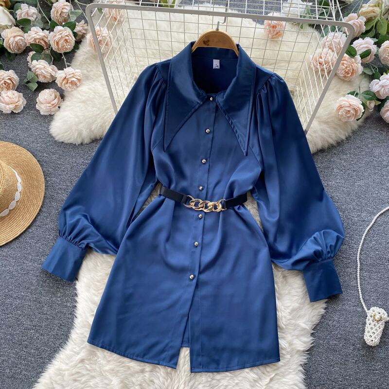-エンド ニッチ デザイン スリム ウエスト ランタン スリーブ 秋のドレス 女性の気質の女神 ファン シャツ スカート ランタンスリーブ オータム 秋物 lyxaj15544252695