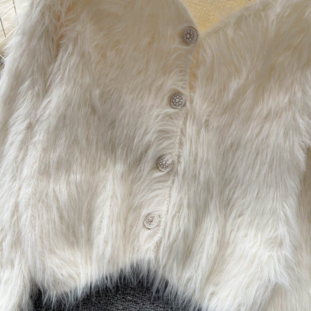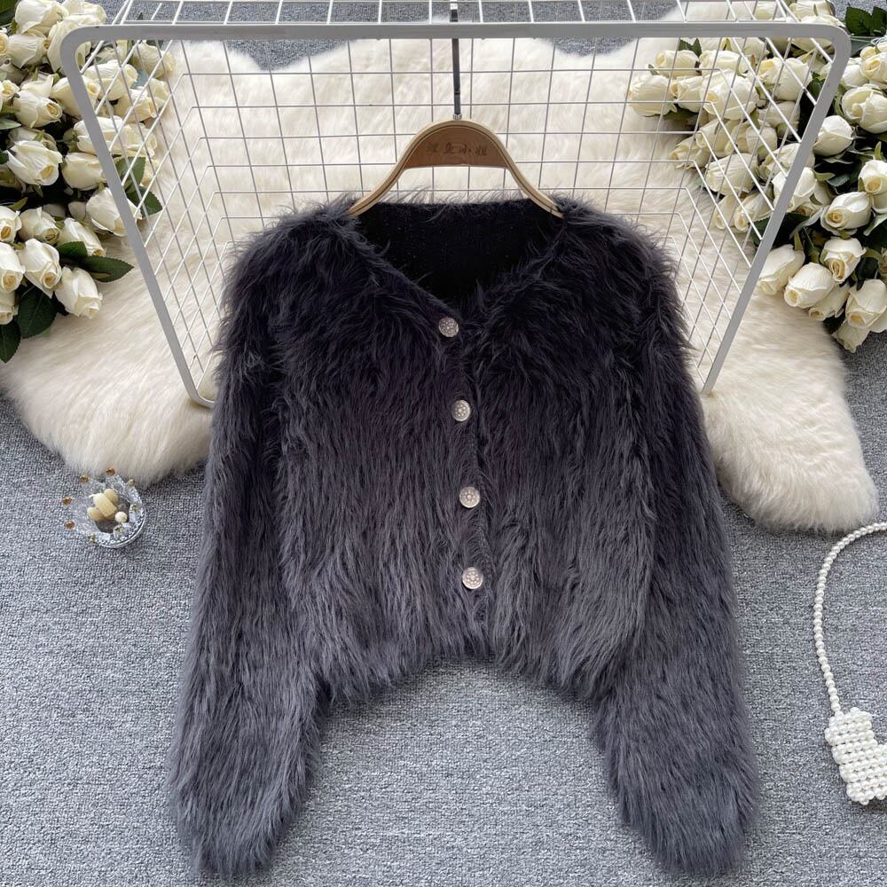秋と冬の純粋な欲望の小さな香りのスタイルのシングルブレストの豪華なジャケットの女性のデザインのセンスの短いセクションの長袖のイミテーションミンクのニットのカーディガン ショート ロング オータム 秋物 ウィンター 冬物 ピュア lyxaj38331580986