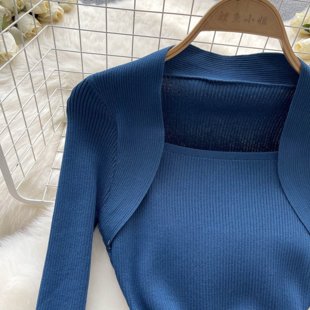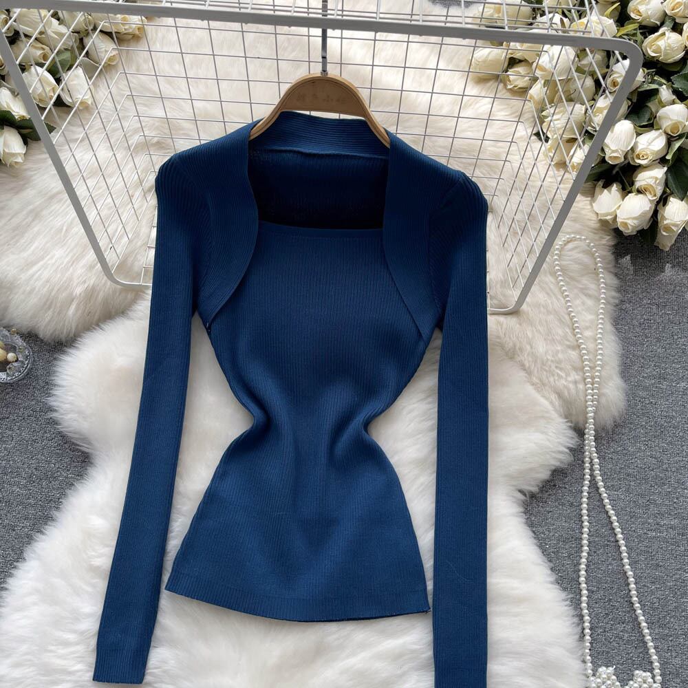 純粋な欲望スタイルデザインセンスニッチ気質スクエアカラーニットセータートップ秋の新婦人服 2022 スリム底入れシャツ オータム 秋物 スクウェア lyxaj68773934169
