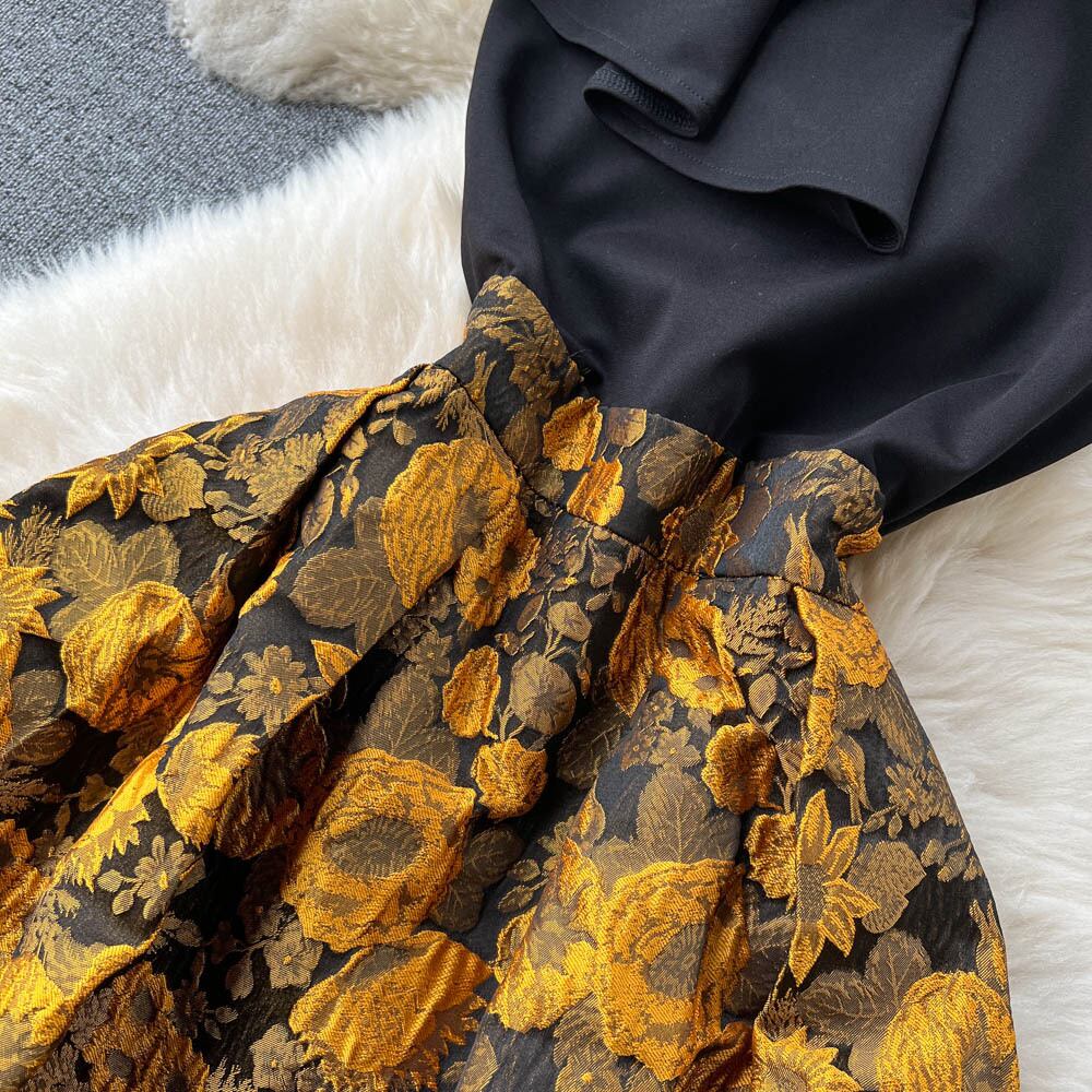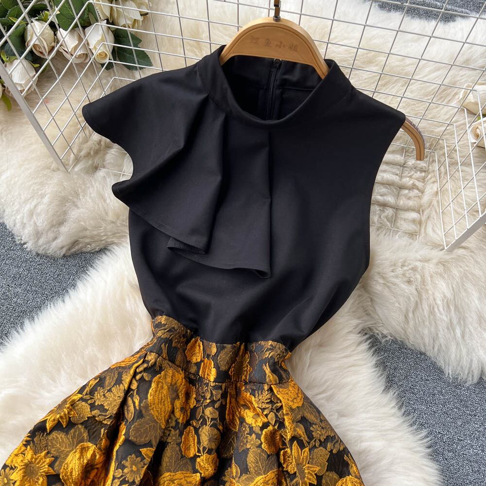 春の新デザインセンスフリルノースリーブスプライシングハイウエスト立体的な花の刺繍の気質の小さな新鮮なドレス ハイウェスト スプリング 春物 フラワーデザイン lyxaj43845483800