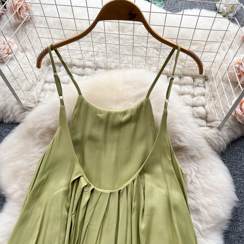 夏のレトロなセクシーな背中の開いたホルター ネック ドレス女性の緩いストラップ海辺の休日のスタイル怠惰な緩いロング スカート サマー 夏物 lyxaj80241818904