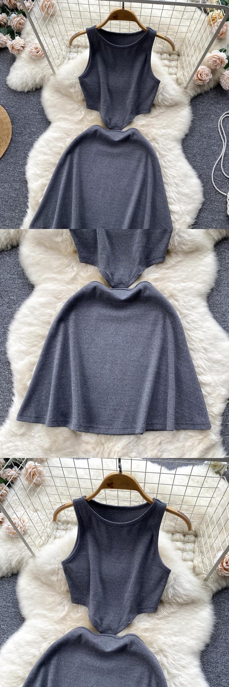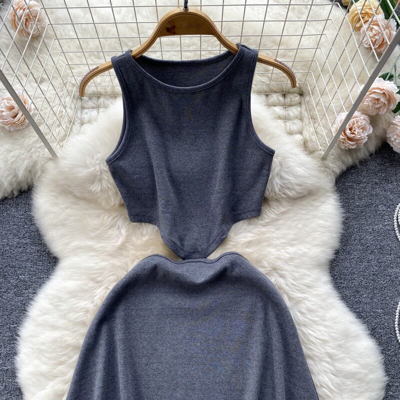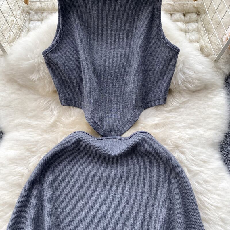 セクシーな背中の開いたノースリーブ ドレス女性の夏のウエスト痩身中空へそベスト ドレス無地スパイス ガール スカート トレンディ サマー 夏物 ソリッドカラー lyxaj75344052573