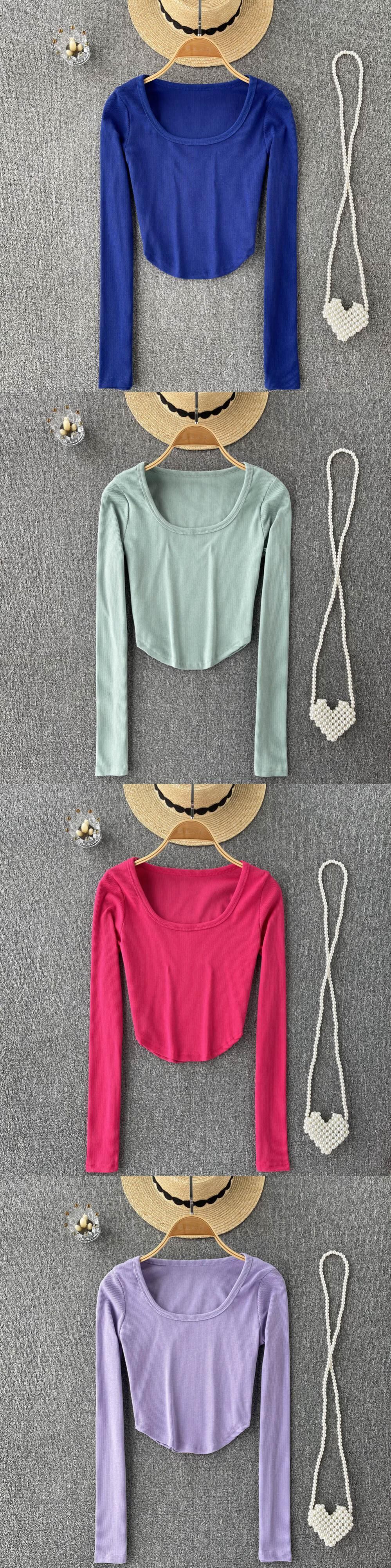 ホットホワイトオールマッチロングスリーブTシャツ女性の秋のショートスタイルのユニークなシックなスモールトップeignスタイルの美しいスクエアカラーTシャツ オータム 秋物 スクウェア lyxaj92741010297