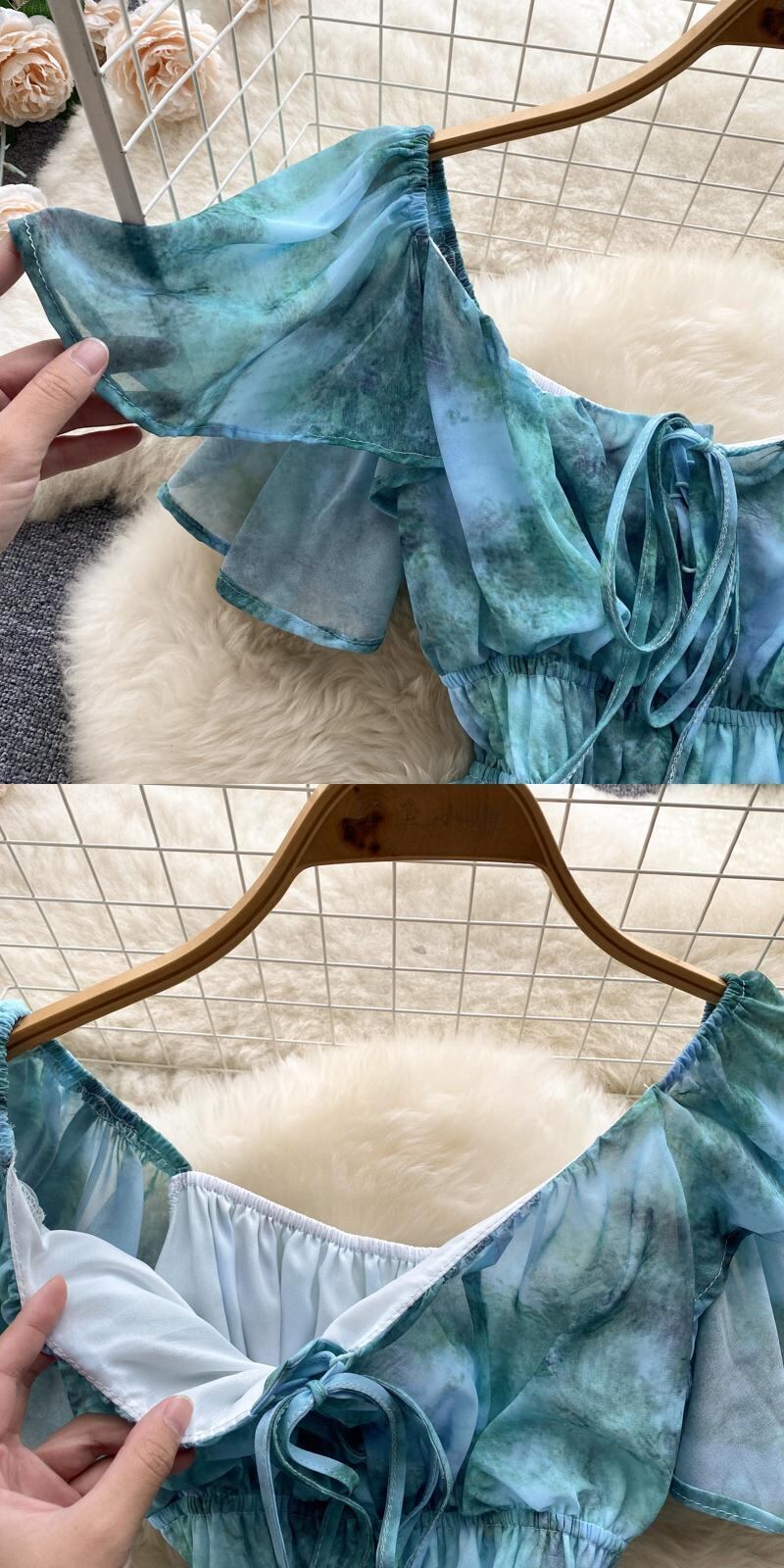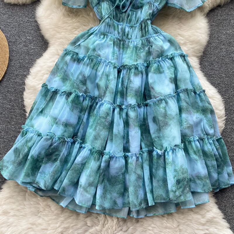 夏の新作ライトラグジュアリーコート油絵フレンチプリント先進デザインセンスニッチショートウエストドレス サマー 夏物 lyxaj85593912844