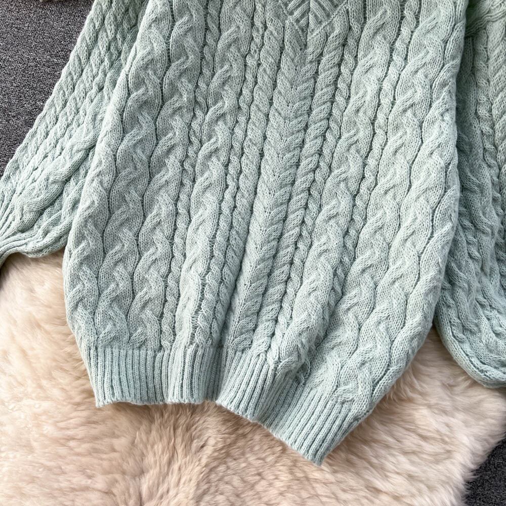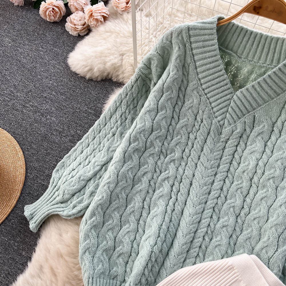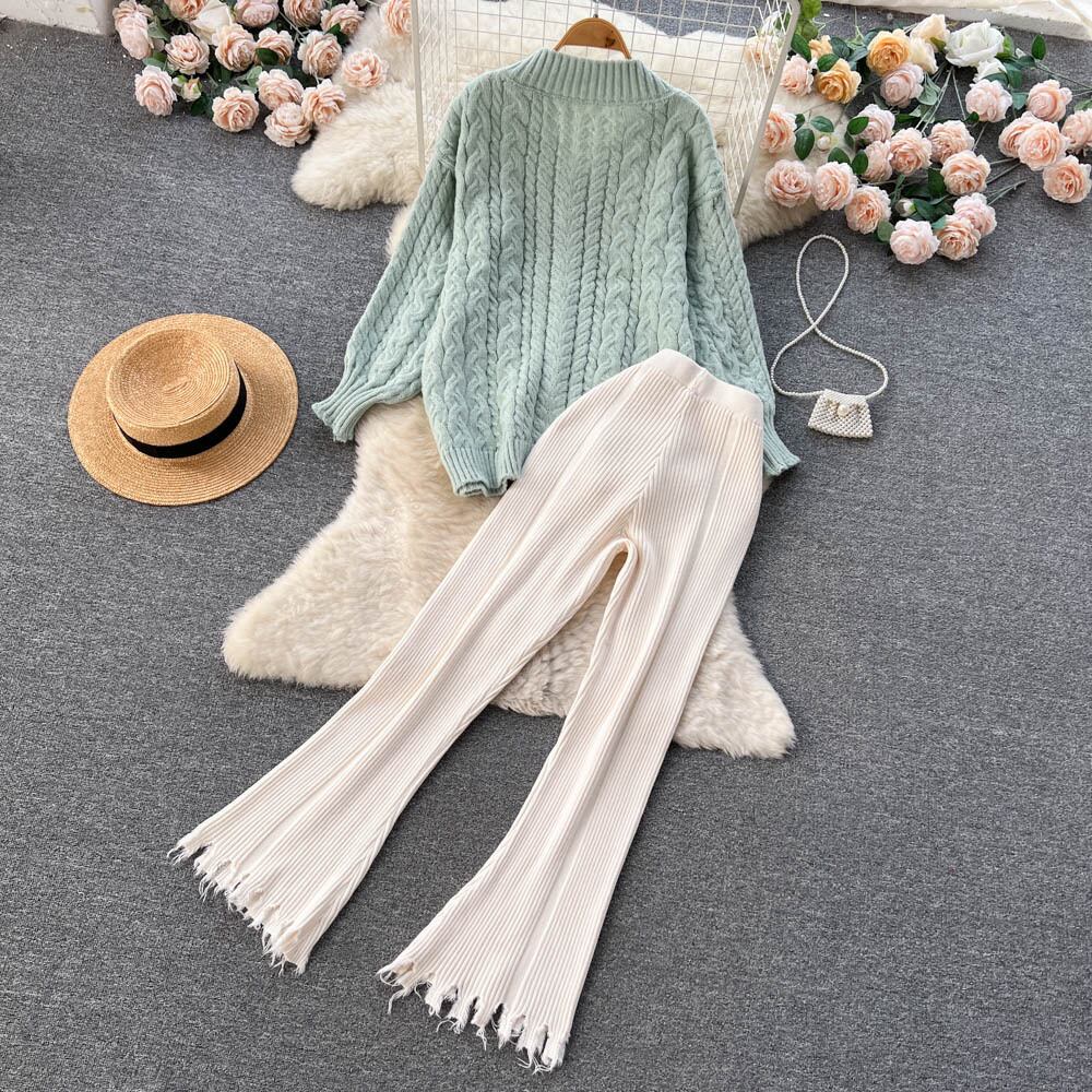 秋冬のハイエンドレトロ気質スーツ女性Vネックツイストセーター+不規則ニットパンツツーピースセット オータム 秋物 ウィンター 冬物 lyxaj38243858074