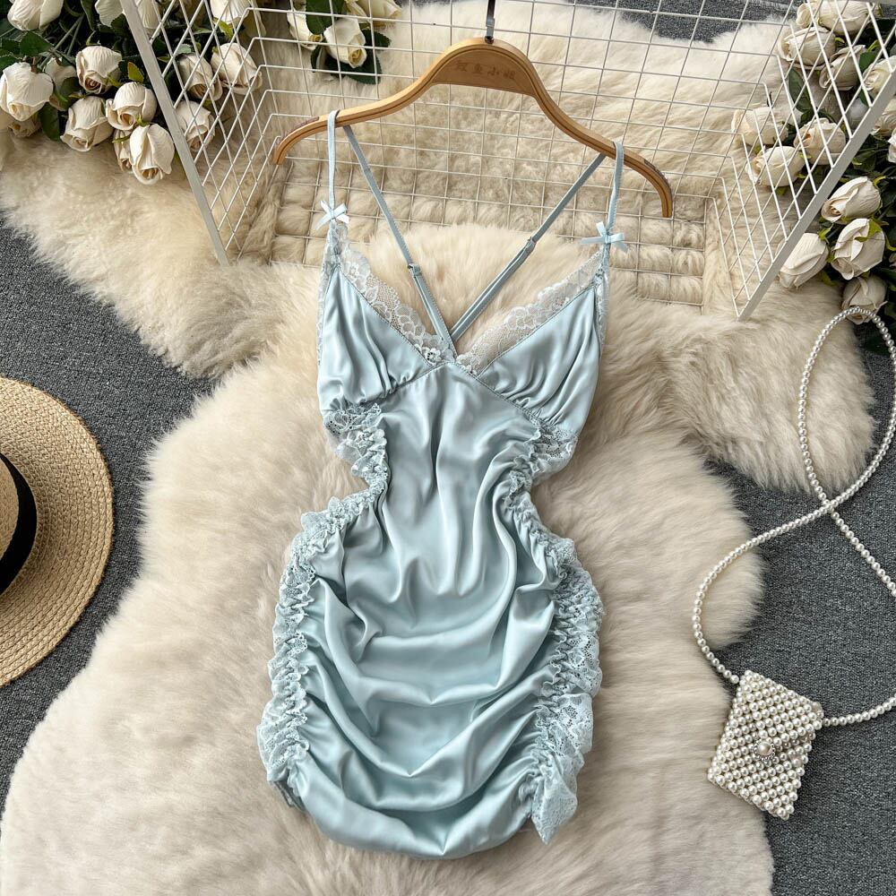 夏のセクシーなスリング レース V ネック スプライシング タイトな超ショート バッグ ヒップ純粋な欲望風ドレス女性の潮 サマー 夏物 Vネック ピュア lyxaj5916752967