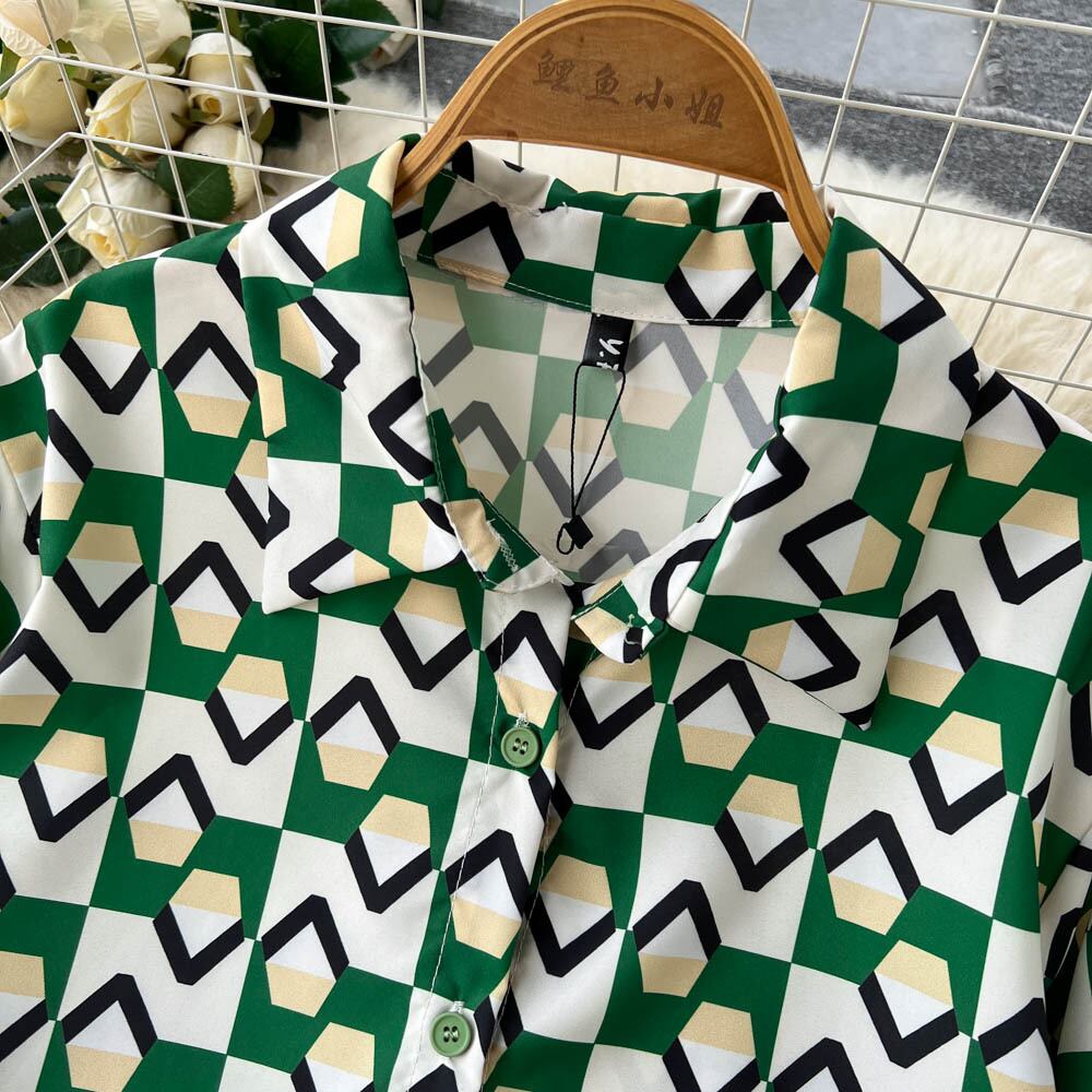 有能洋風おしゃれツーピーススーツ女性秋プリントゆったり長袖シャツトップハイウエストストレートレッグ長ズボン ハイウェスト ロング オータム 秋物 lyxaj93164253768