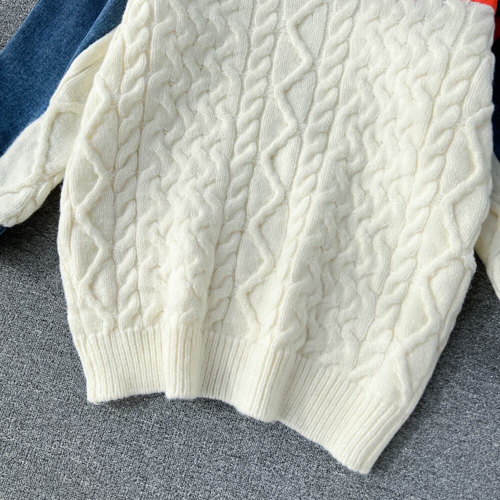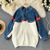2022 秋と冬の新デザインセンス怠惰なスタイルニットステッチデニムジャケット女性のルーズカジュアルプルオーバーセーター オータム 秋物 ウィンター 冬物 lyxaj98872045029