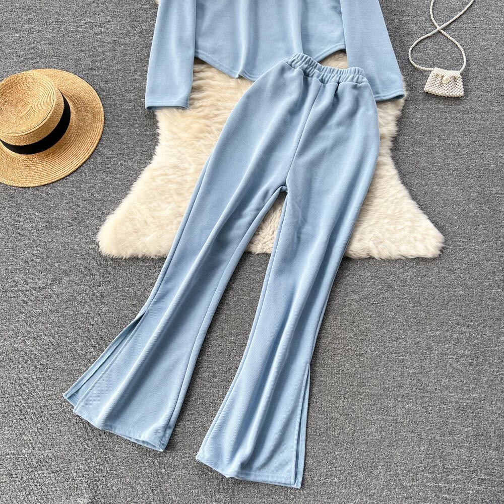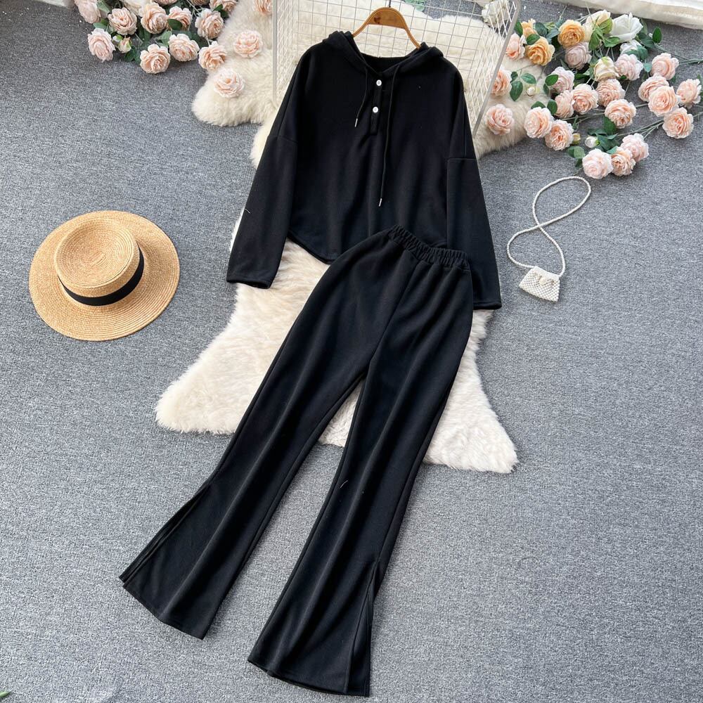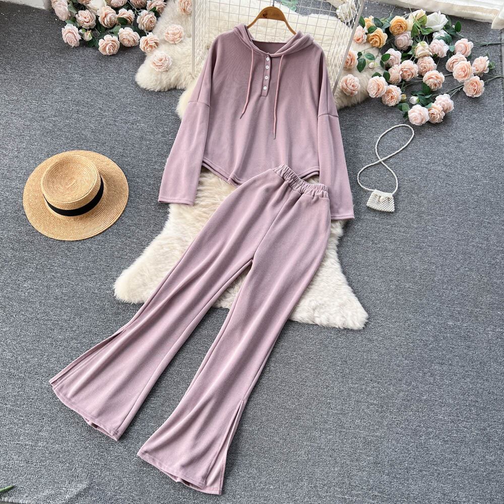 春の新作カジュアルスポーツスーツレディースルーズフード付きセータージャケット+スリットフレアパンツツーピーストレンディ レッド スプリング 春物 lyxaj10689610112