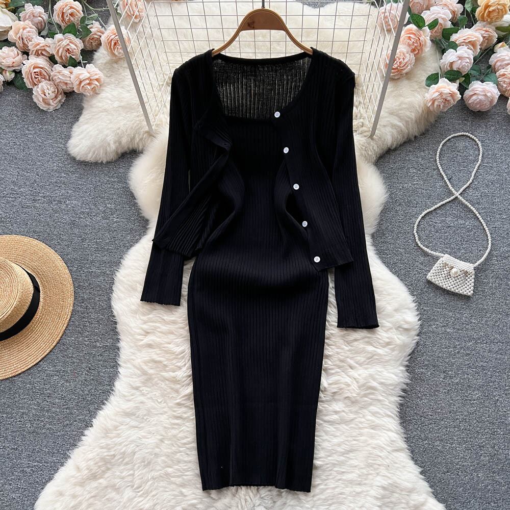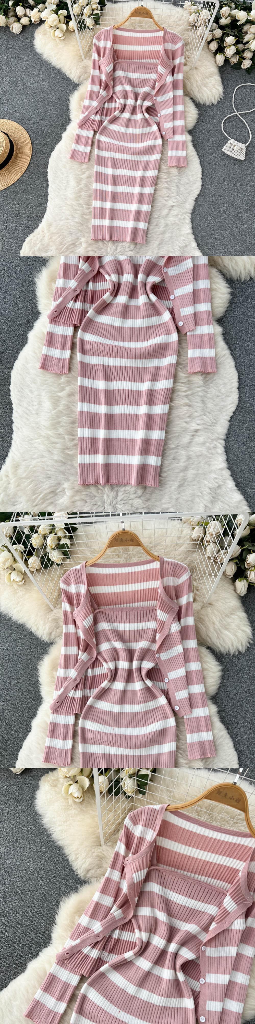 純粋な欲望のスタイルのツーピースのスーツの女性の秋の有名人の気質長袖ニットカーディガンコートスリムストラップドレス ロング オータム 秋物 lyxaj48574995739