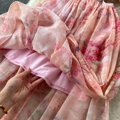 フレンチスウィートパフスリーブドレスサマーレディースドレスニッチ感ホローウエストスリム花柄ドレス 大人ガーリー キュート カジュアル 夏物 lyxaj76579746058