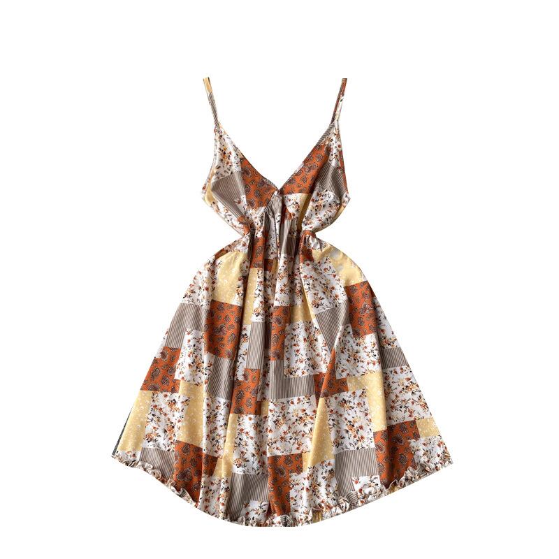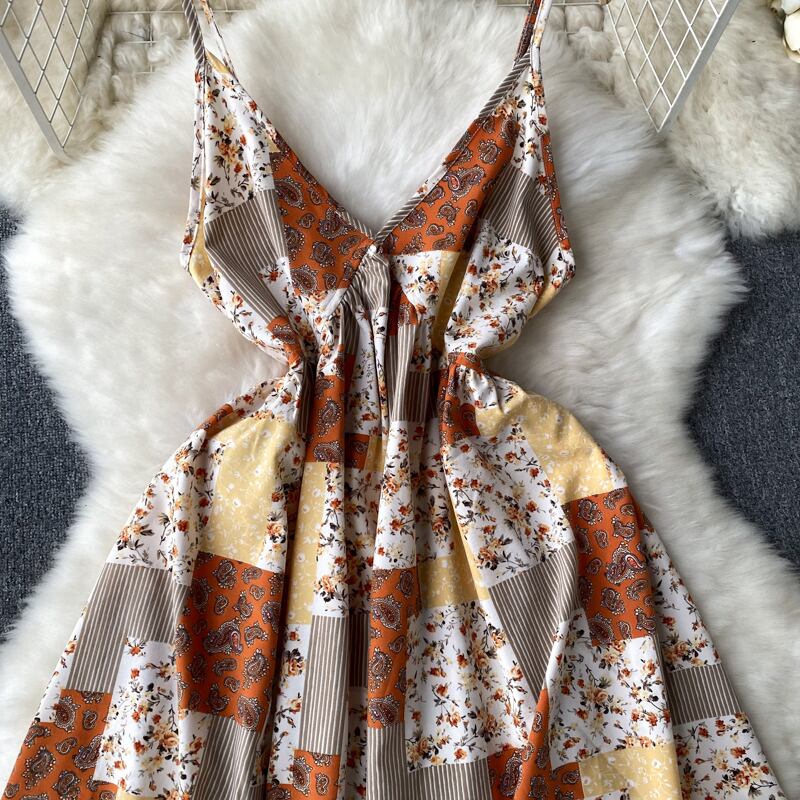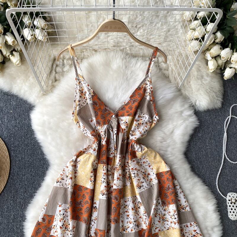 夏の新しいヨーロッパとアメリカのイン スタイル V ネック オールマッチ スリム サスペンダー ドレス女性弾性ウエスト ビッグ スイング A ラインの妖精のスカート エラスティック 伸縮 サマー 夏物 Vネック Aライン ヨーロピアン lyxaj52811336583