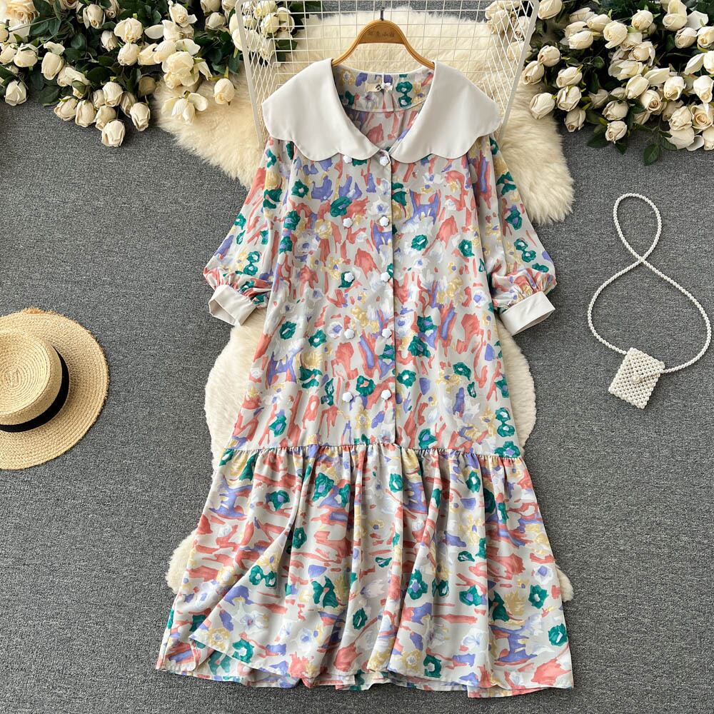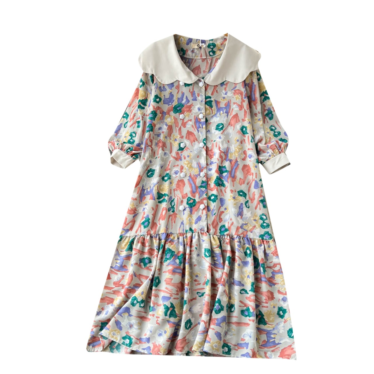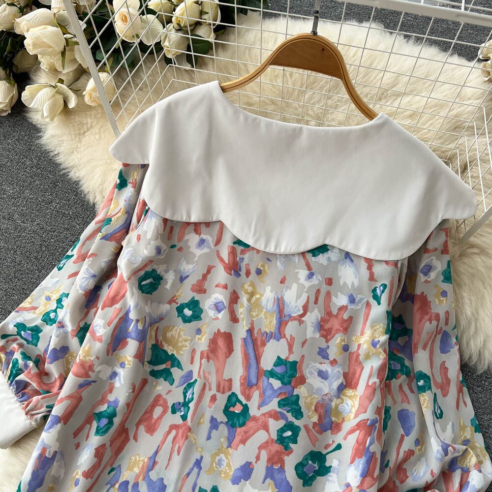 2022 秋の新スウィートカレッジスタイルフレンチフローラルドレス女性人形の襟ルーズビッグスイングロングスカートトレンディ 大人ガーリー キュート カジュアル オータム 秋物 花柄 lyxaj2729720664