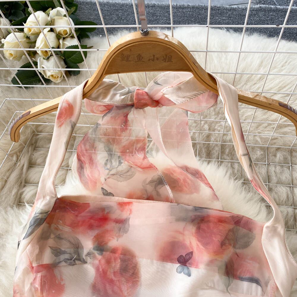 純粋な欲望風ホルター ネック ドレス夏の女性の海辺の休暇フレンチ スタイル スリム ウエスト プリント サスペンダー ドレス潮 サマー 夏物 lyxaj68927408329