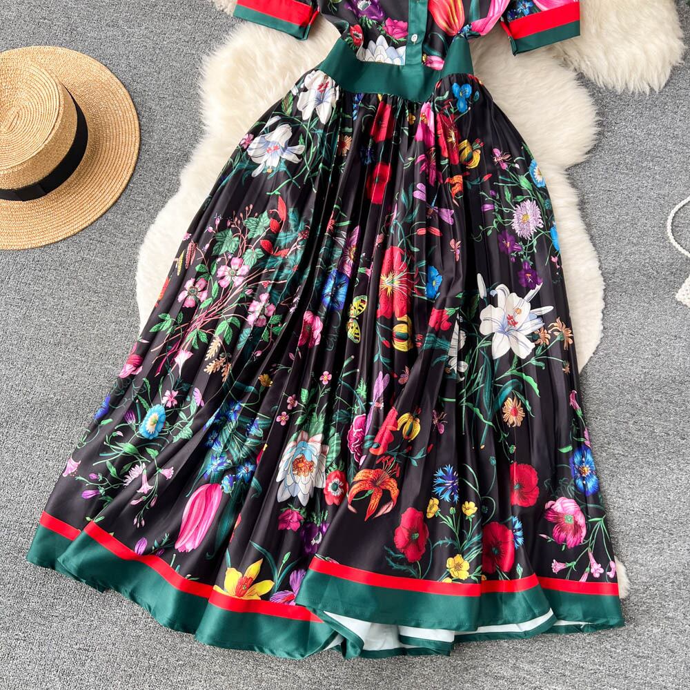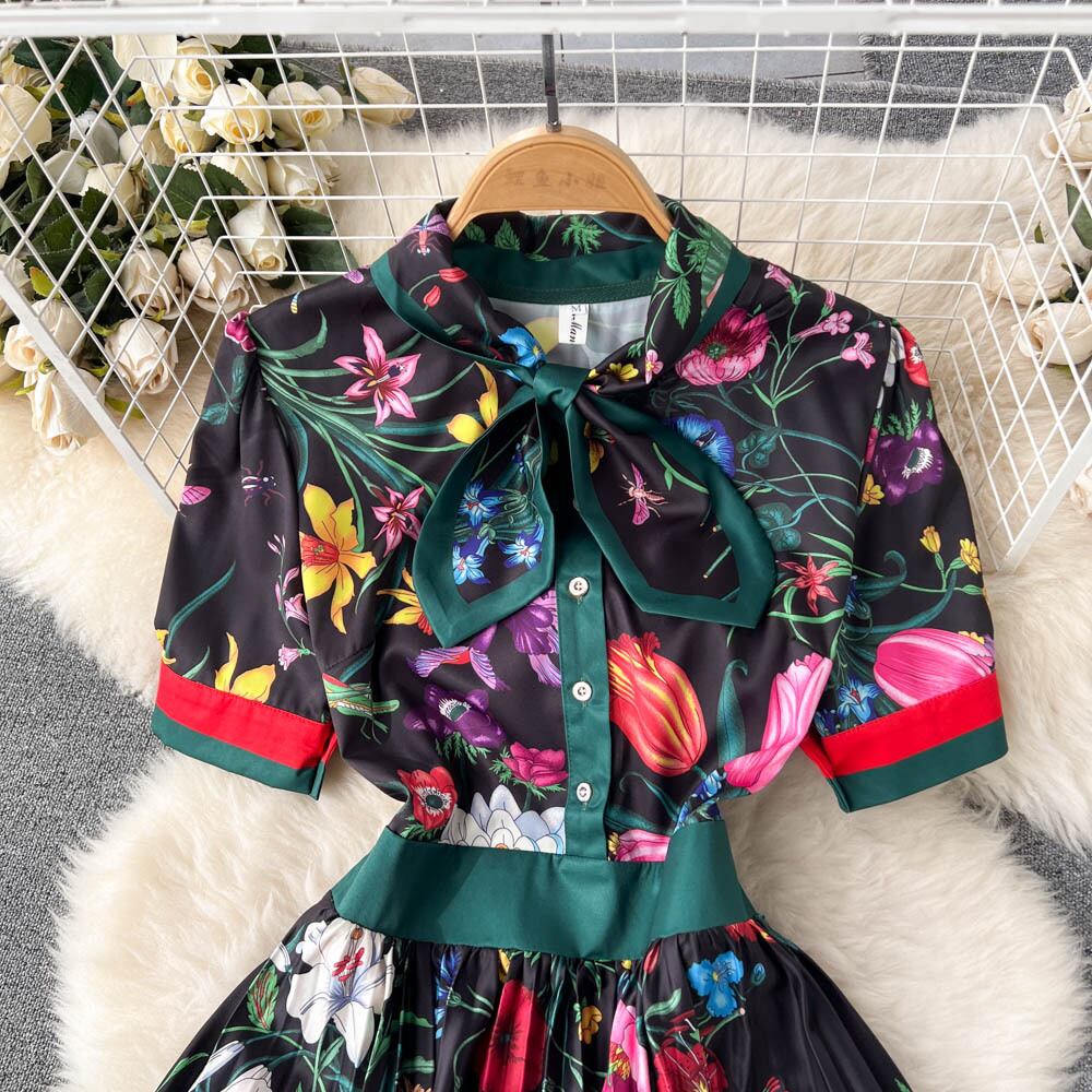 夏の新しい甘いレトロ フレンチ ファッション エレガントな半袖蝶ネクタイ ウエスト プリーツ プリント シフォン ドレス リボン 大人ガーリー スウィート キュート カジュアル サマー 夏物 lyxaj3544084100