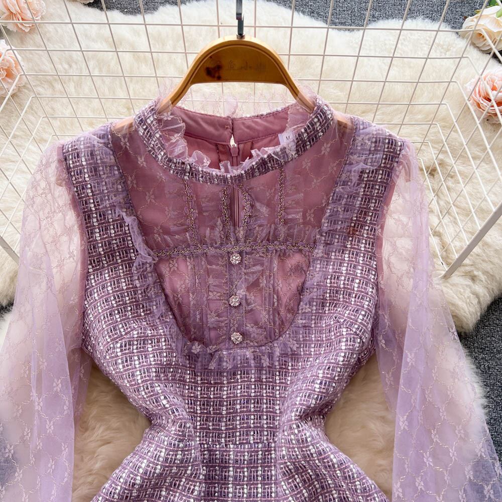 秋冬新作 ライト ラグジュアリー 重工業 厚手 花風 ステッチ 刺繍 ネイル ダイヤモンド オールマッチ ミドル丈 小さめ 香る風ドレス オータム 秋物 ウィンター 冬物 フラワーデザイン lyxaj21950452569
