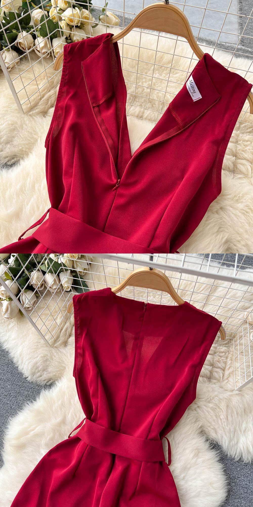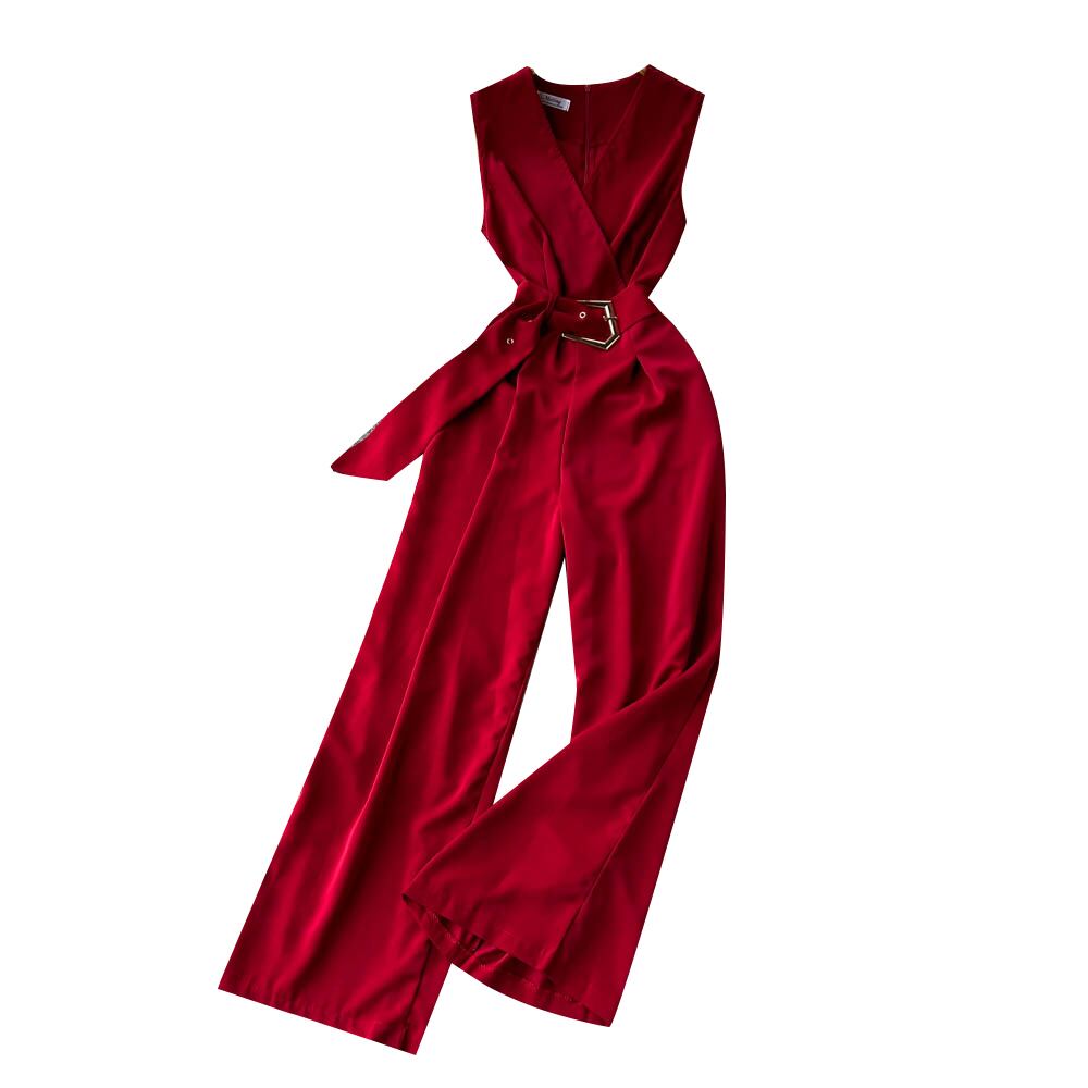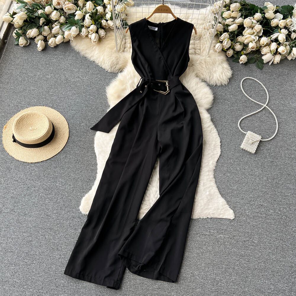 2023 夏新セクシーな V ネック気質ストラップウエストジャンプスーツ女性の小さな香りスタイルストレートワイドレッグロングパンツ サマー 夏物 Vネック lyxaj86021055477