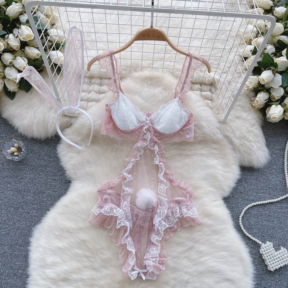 純粋な欲望スタイル デザイン センス ピンク キュート プリンセス セクシー レース パースペクティブ ロールプレイング ハイK ジャンプスーツ ユニム タイド 大人ガーリー スウィート カジュアル lyxaj97901467575