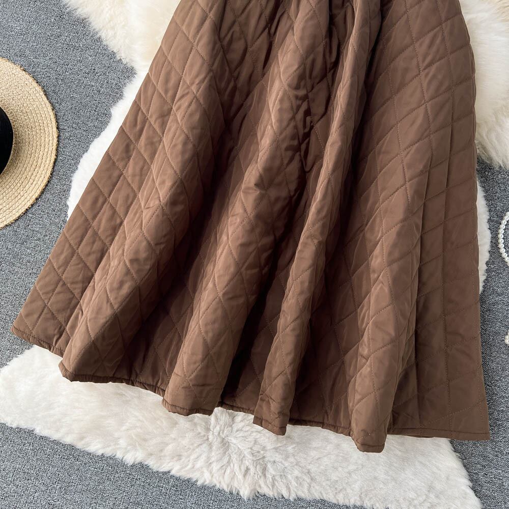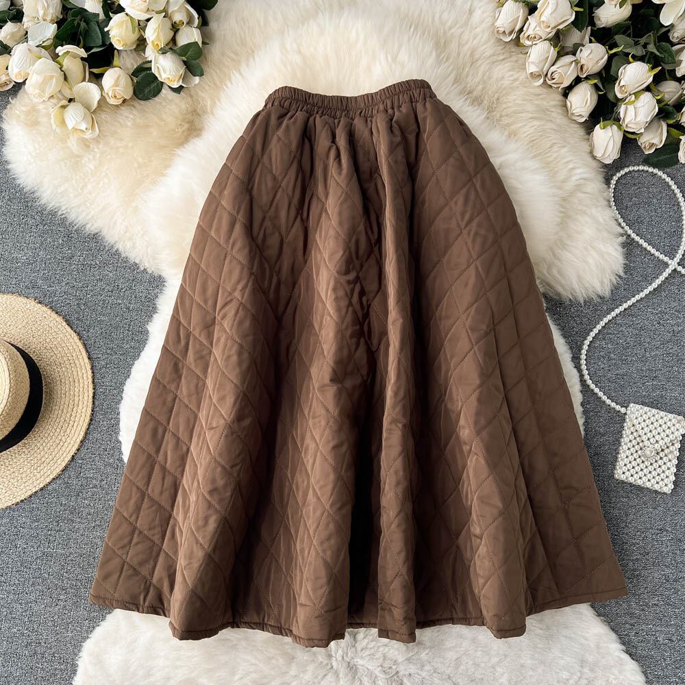 オールマッチのハイウエストスリムなミッドレングスのaラインスカートのバージョンは、秋の女性のハイエンドの黒の厚い傘のスカートです ハイウェスト ブラック オータム 秋物 lyxaj42270611253