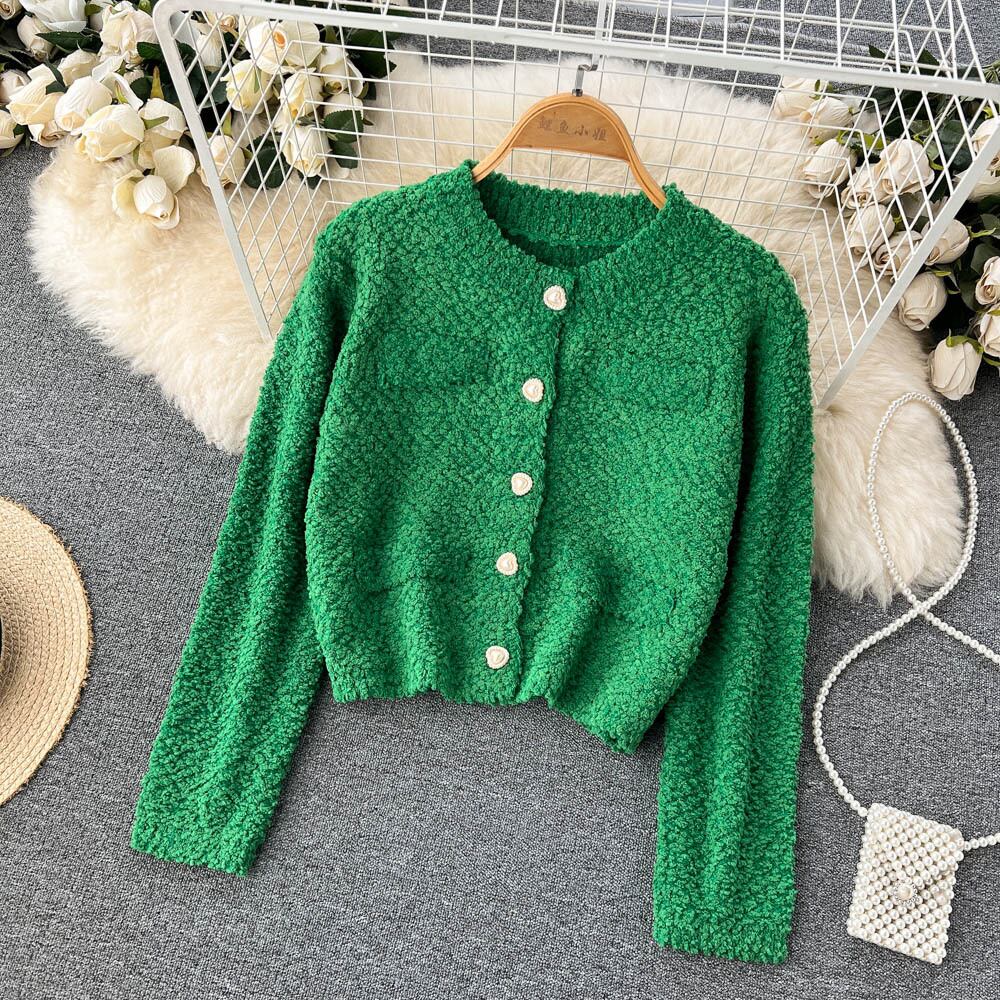 フランスの有名人の気質の白い長袖ニットカーディガンジャケット秋の婦人服バージョンルーズで用途の広いラウンドネックトップ ロング ホワイト オータム 秋物 Oネック lyxaj53815721978