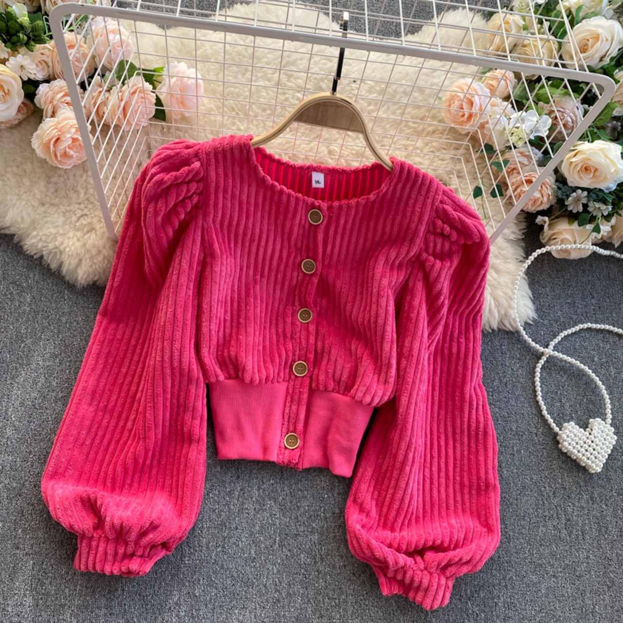 フレンチデザインセンスニッチコーデュロイ長袖シャツジャケット秋物婦人服ウエスト痩身エインスタイルショートシャツ ロング オータム lyxaj93554451628