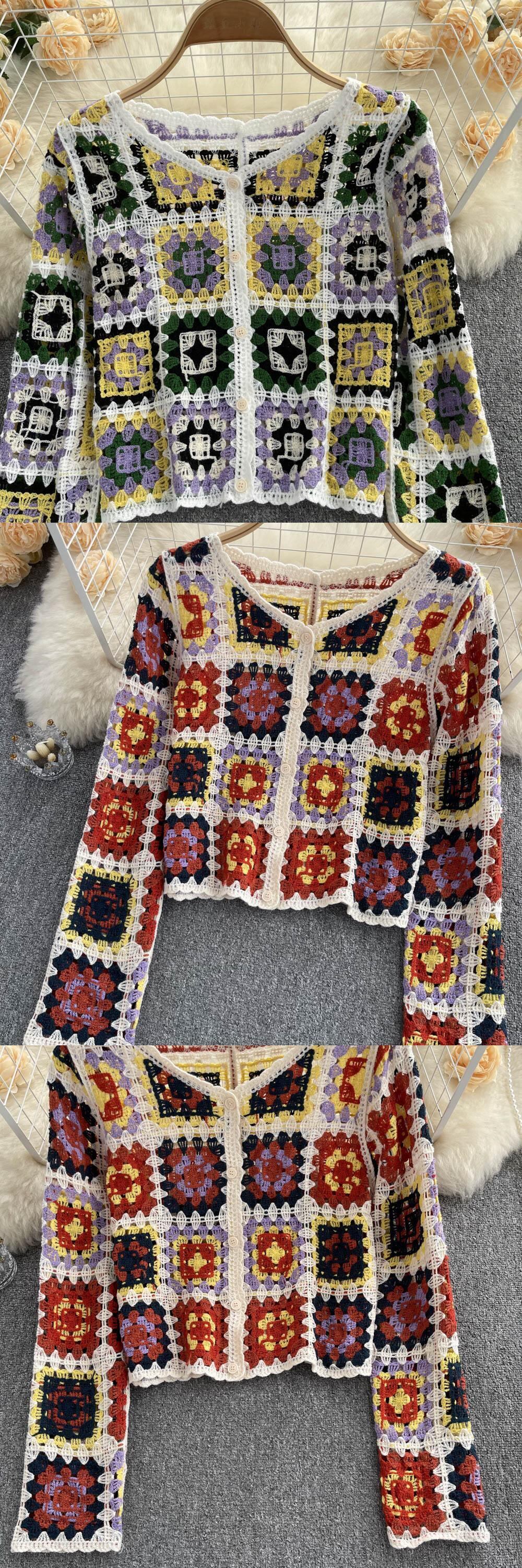 エスニック風かぎ針編み中空空気質Vネックニット日焼け止めカーディガンジャケットレディース薄手夏フレンチ長袖上潮 ロング サマー 夏物 lyxaj12220522093