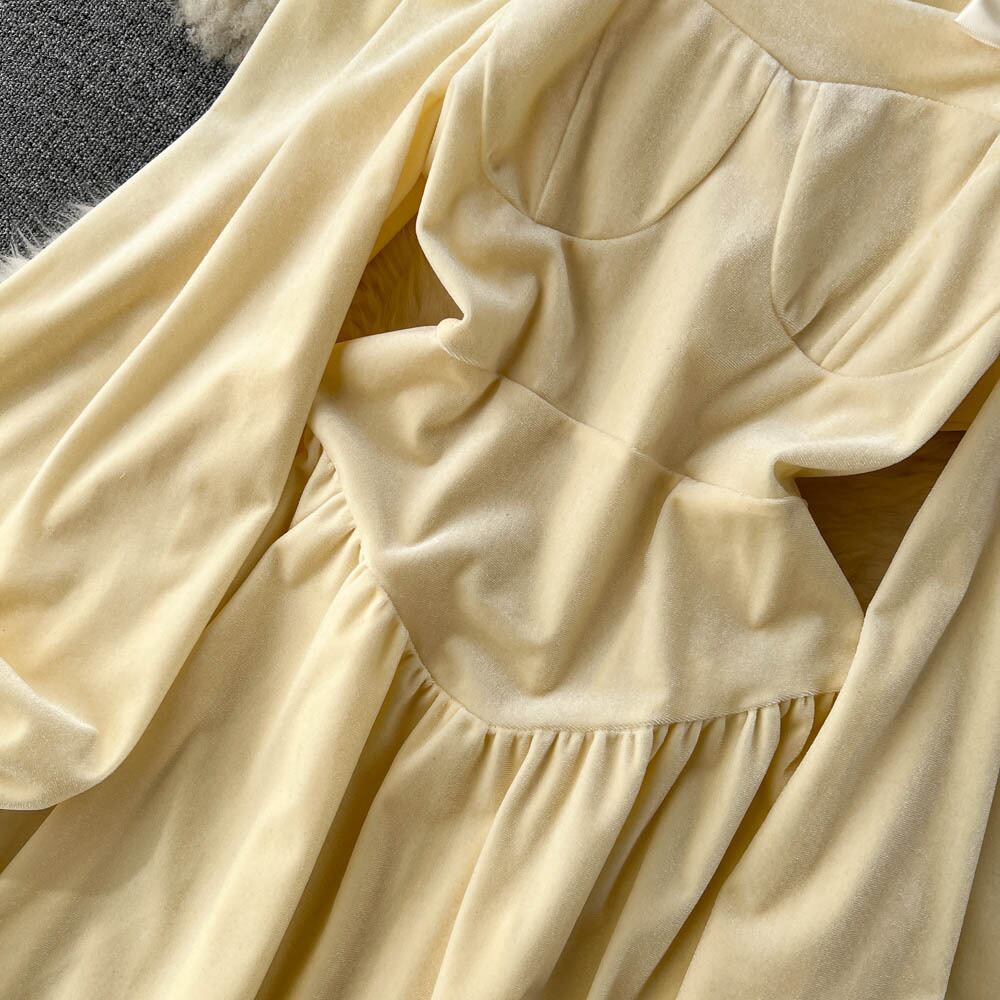 小姫風サスペンダーワンショルダーワンピーススカート 秋の女性の美ウエスト腰とラッパ袖Aラインスカート オータム 秋物 lyxaj22213577316