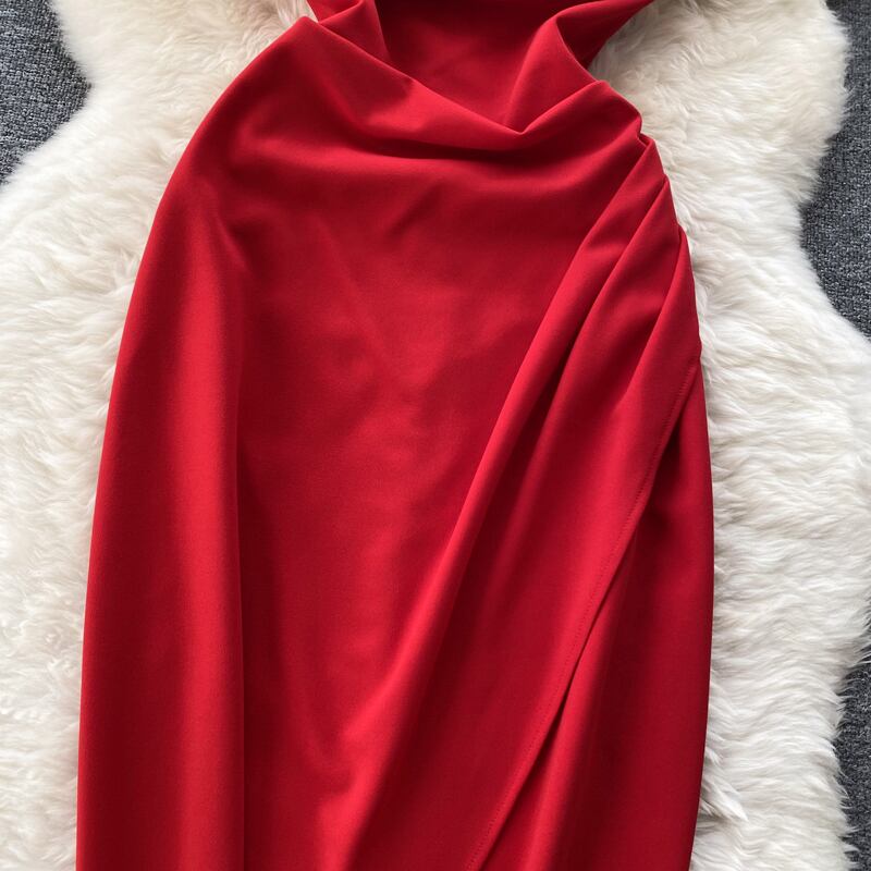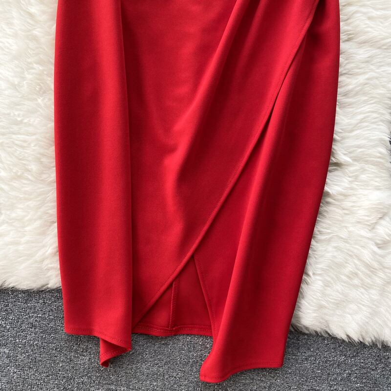 -品質サテンセクシーバッグヒップスカート女性のサスペンダードレススカート不規則なスリットプリーツウエストドレス lyxaj31055344029