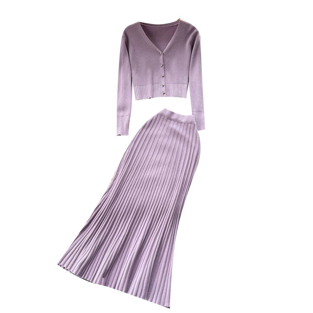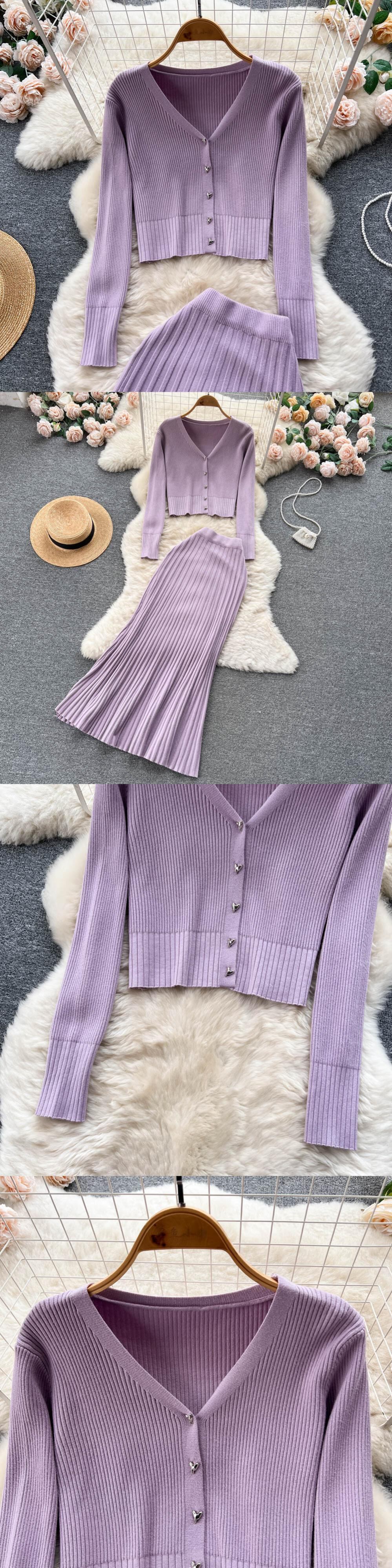 秋と冬の小さなフレグランス スーツ女性の短い V ネック シングル ブレスト セーター カーディガン + プリーツ フィッシュ テール スカート 2 点セット ショート オータム 秋物 ウィンター 冬物 Vネック lyxaj60953095950