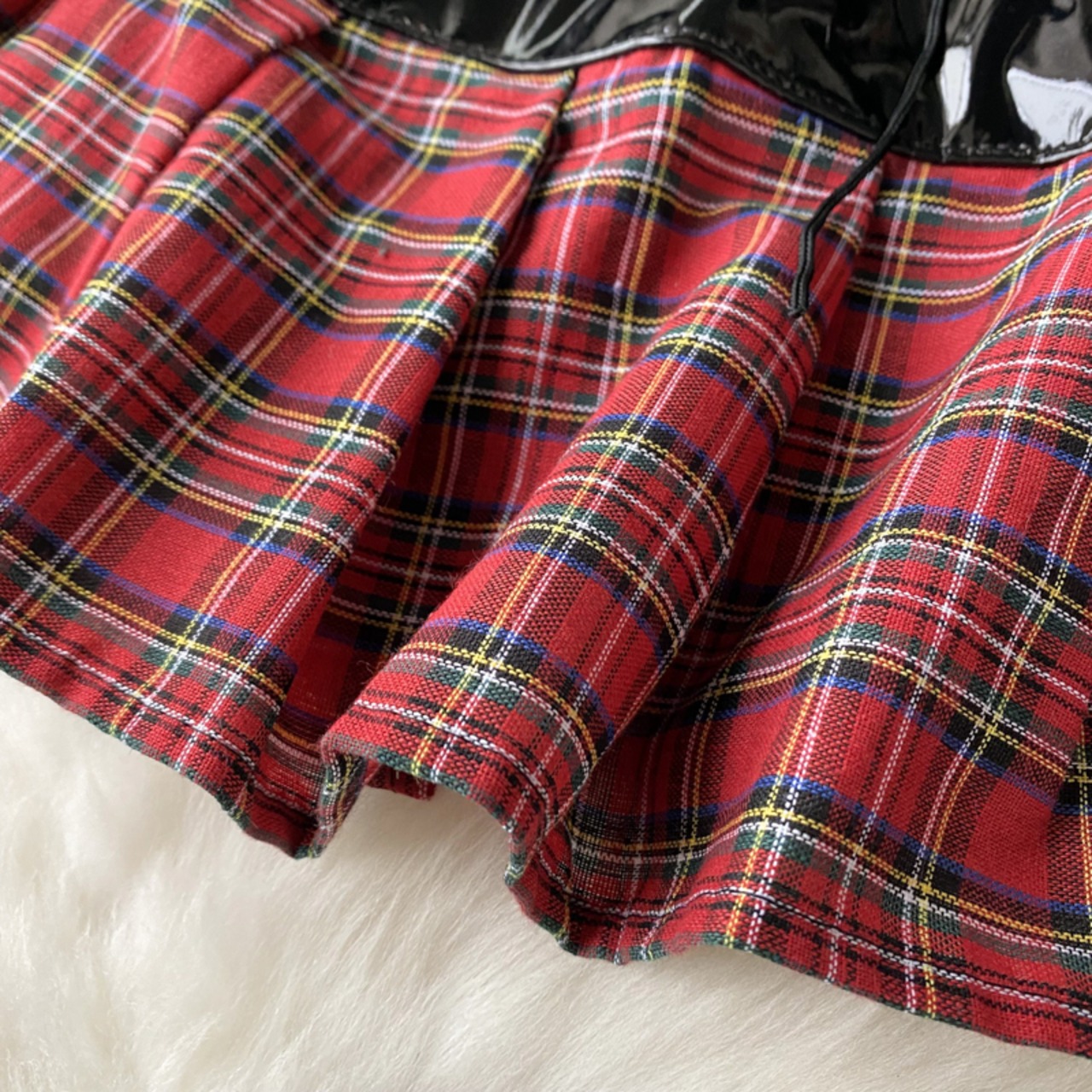 純粋な欲望スタイルのセクシーな格子縞のステッチ PU レザー スカート女性巾着ネクタイ フリル unim サスペンダー ドレス ラッフル lyxaj43250618052