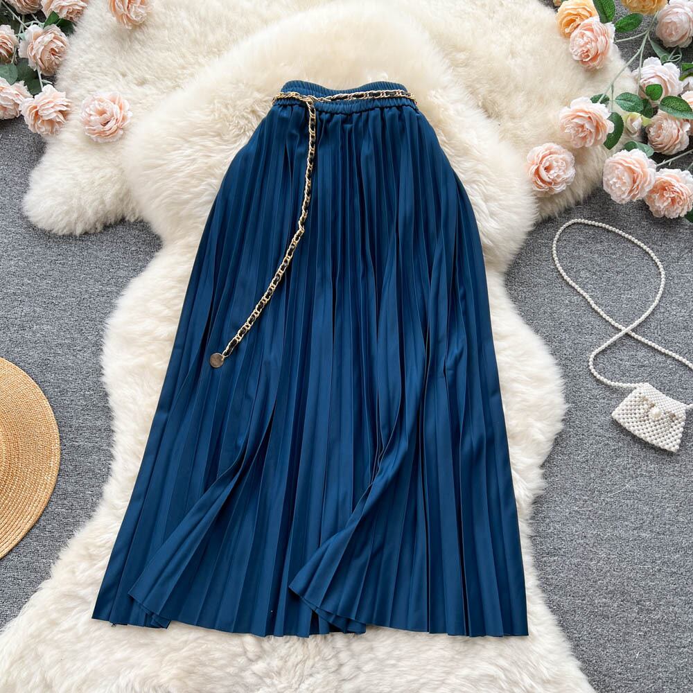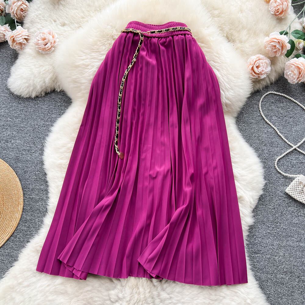 春夏デザインセンスチェーンライトおなじみスタイルプリーツスカートレディース無地Aラインスカート気質オールマッチスカートプレスプリーツスカート スプリング 春物 サマー 夏物 ソリッドカラー lyxaj68971733524