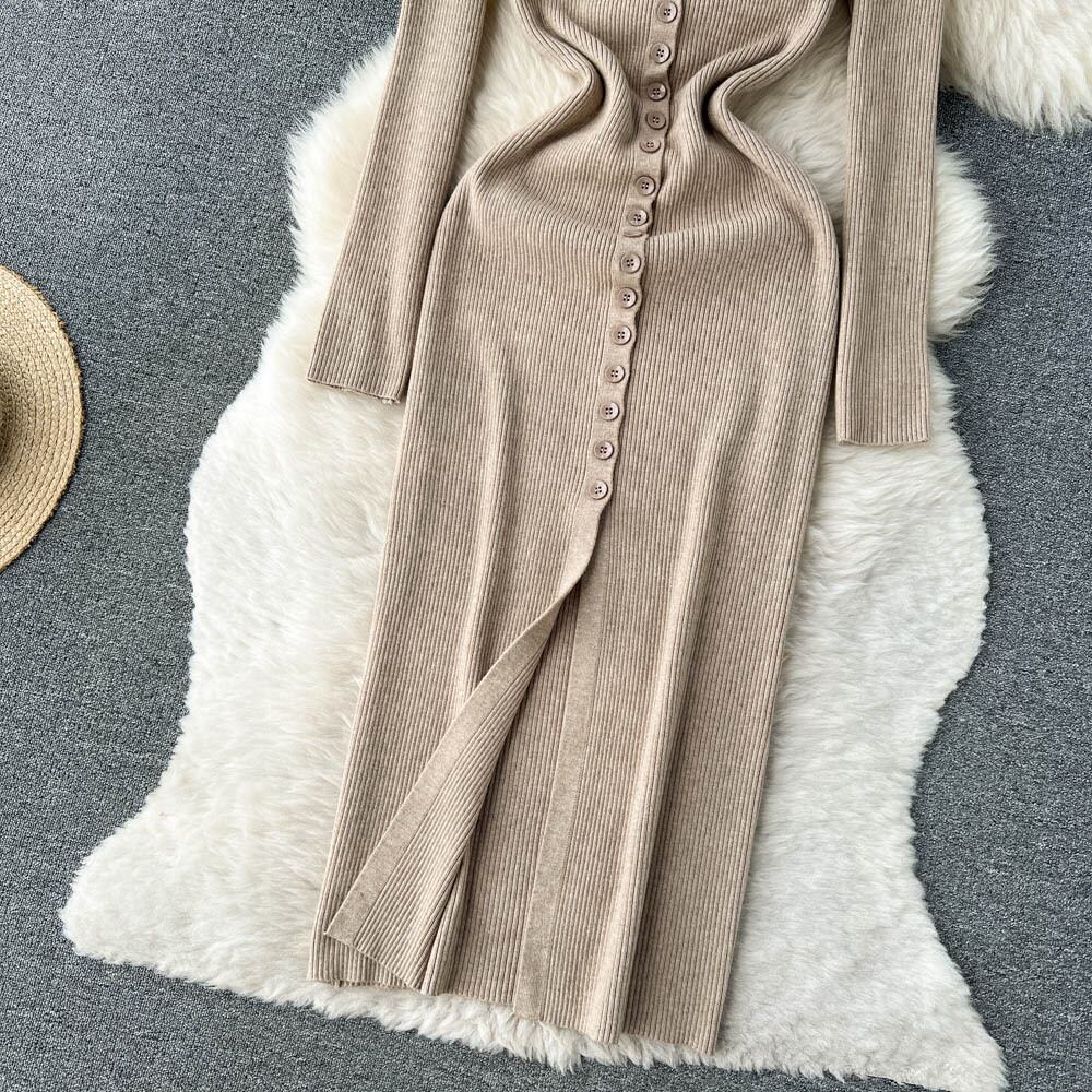 -エンドコールドスタイルニットVネック秋のドレス女性の気質女神スタイルウエストウエストスリムパッケージヒップスカート オータム 秋物 lyxaj28154507093
