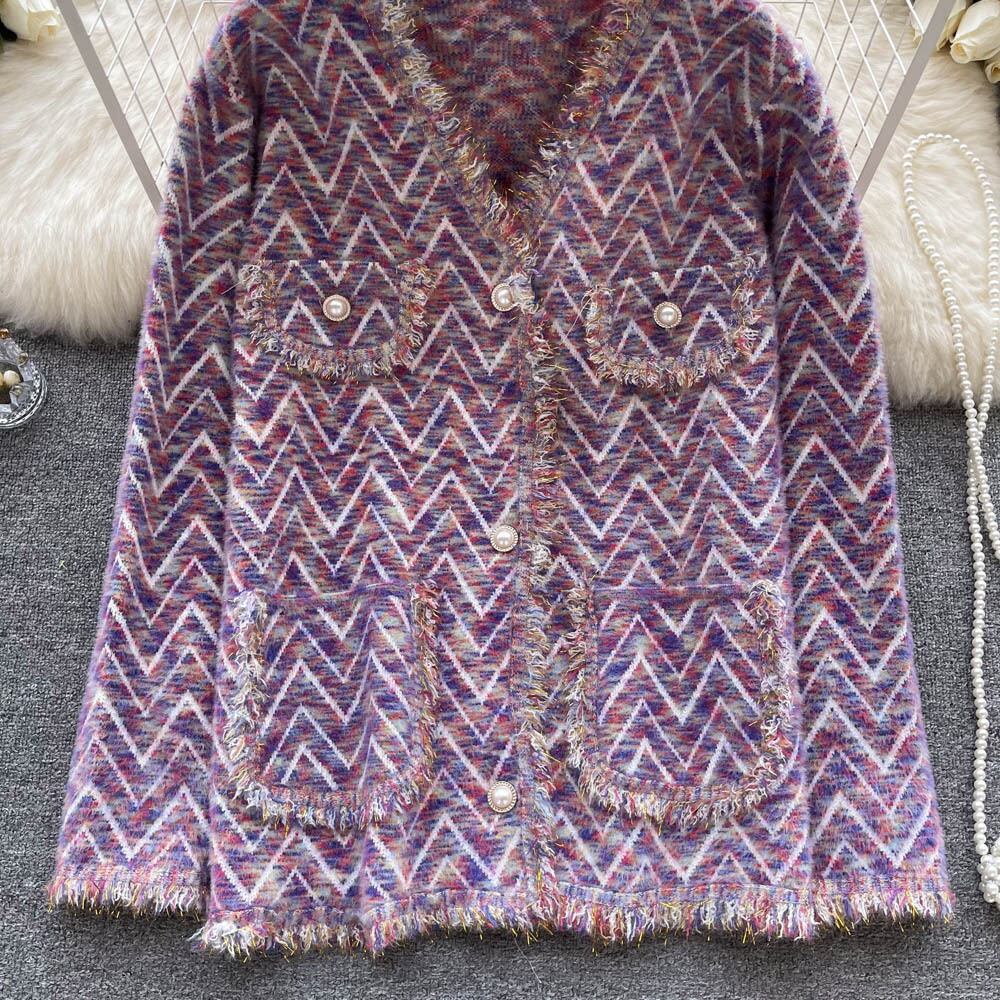 フレンチスタイルのスモールフレグランスセーターコートレディース秋冬新作レディースウィービングテルデザイン怠惰な風ルースカーディガン オータム 秋物 ウィンター 冬物 lyxaj93355811587